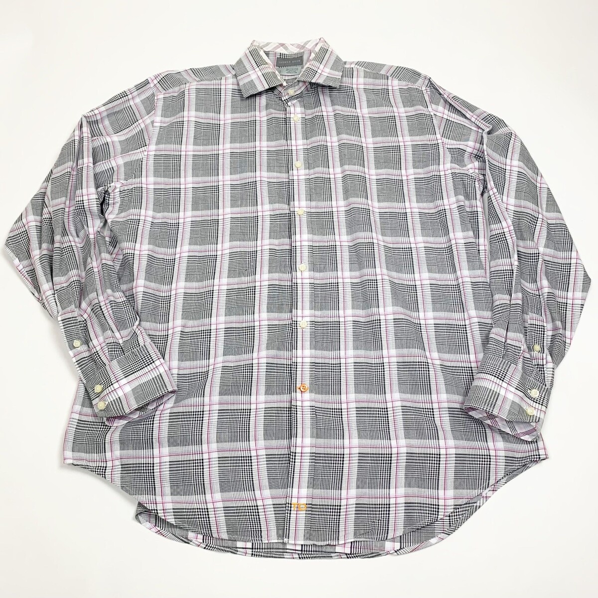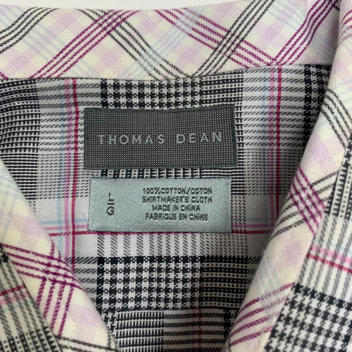 Thomas Dean Mens Button Up Shirt Checkered Purple Gray Size L Long Sleeve