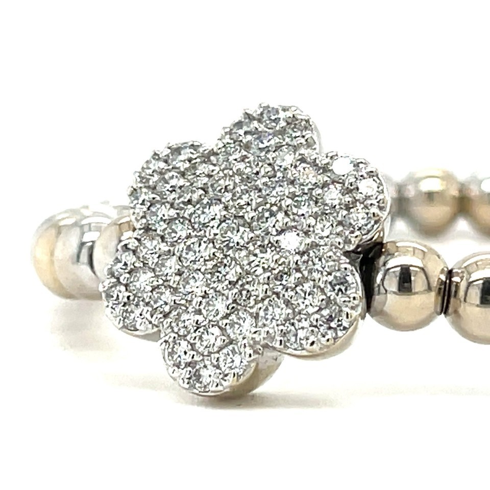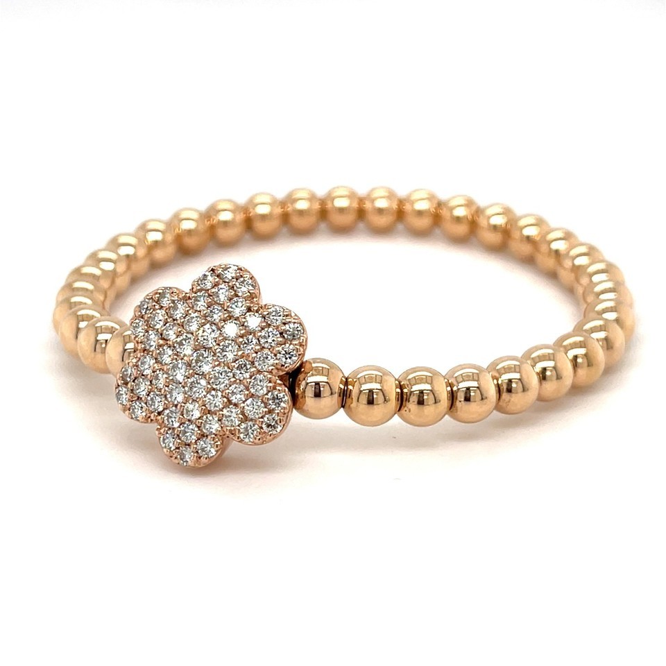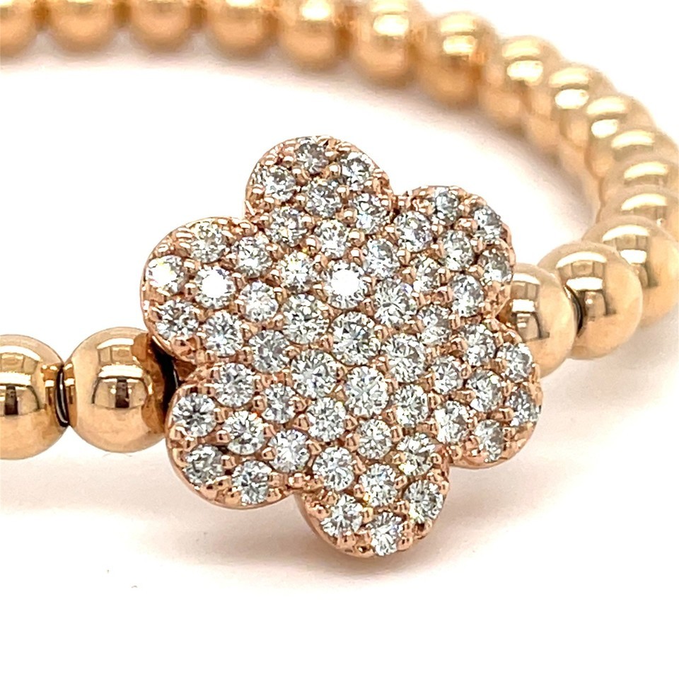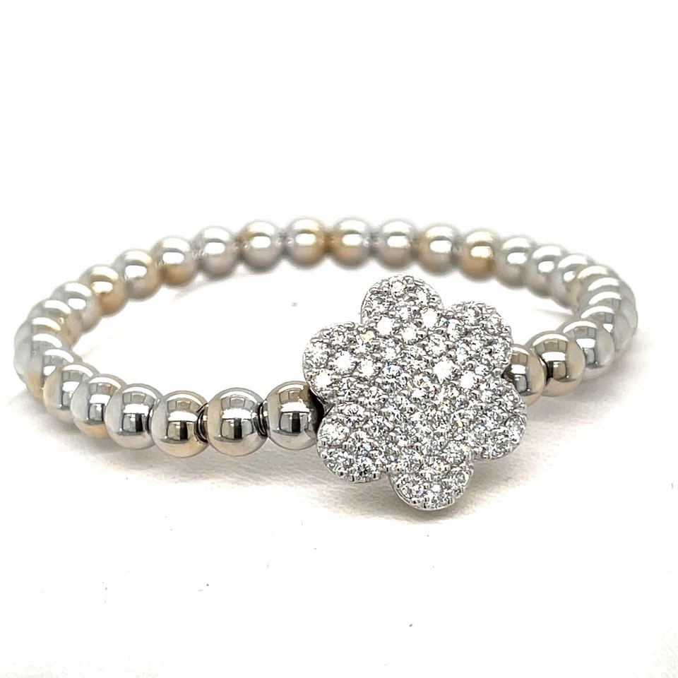 14k A G Gold Beaded Flower Stretch Bracelet w/ 1.8 ct Pave Diamond Flower