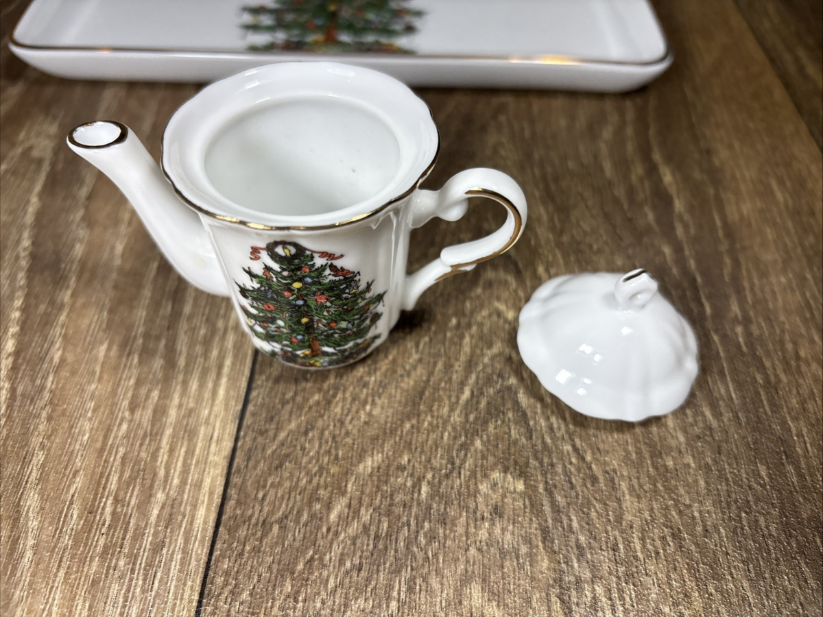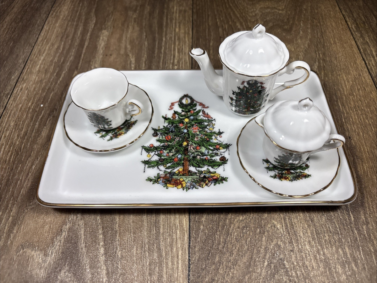 Vintage Child’s Miniature Ceramic Tea Set Japan Christmas Holiday Tree