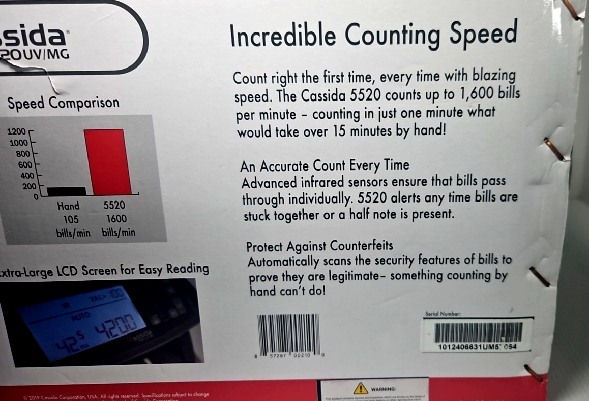 Cassida 5520 UV/MG - USA Money Counter ValuCount UV/MG/IR Counterfeit Detection