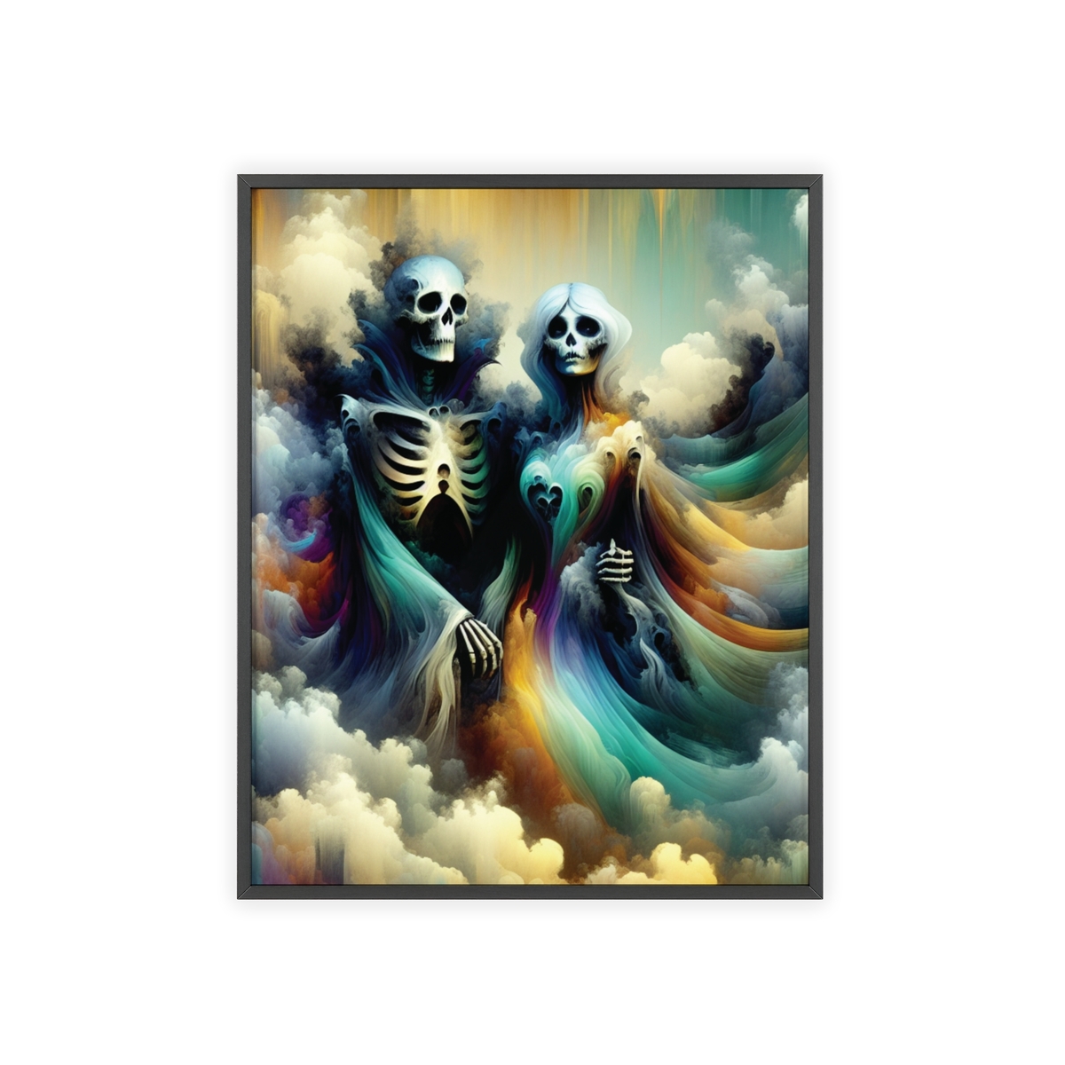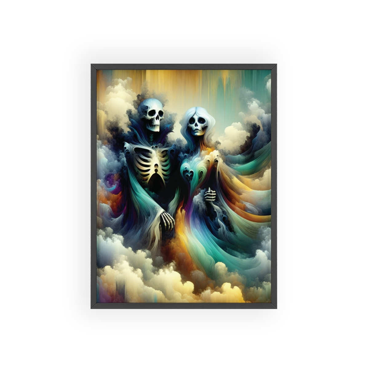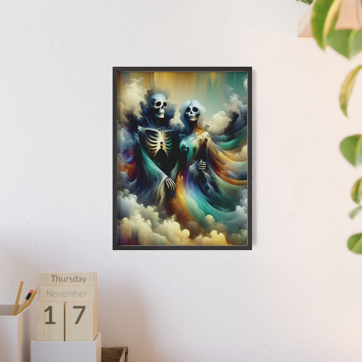 La Muerte Amor Ethereal Skeleton Couple Artwork Poster with Wooden Frame by Sha
