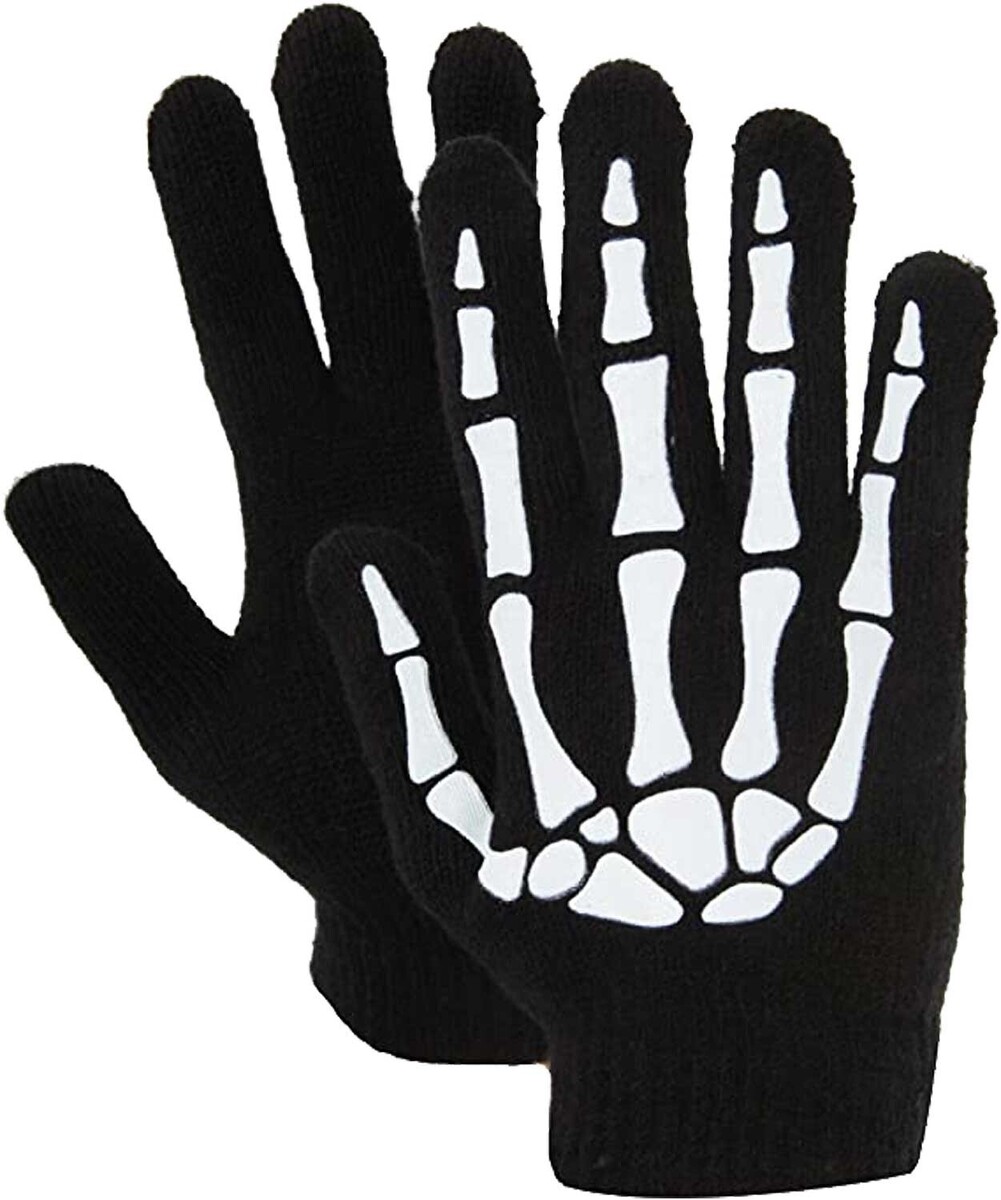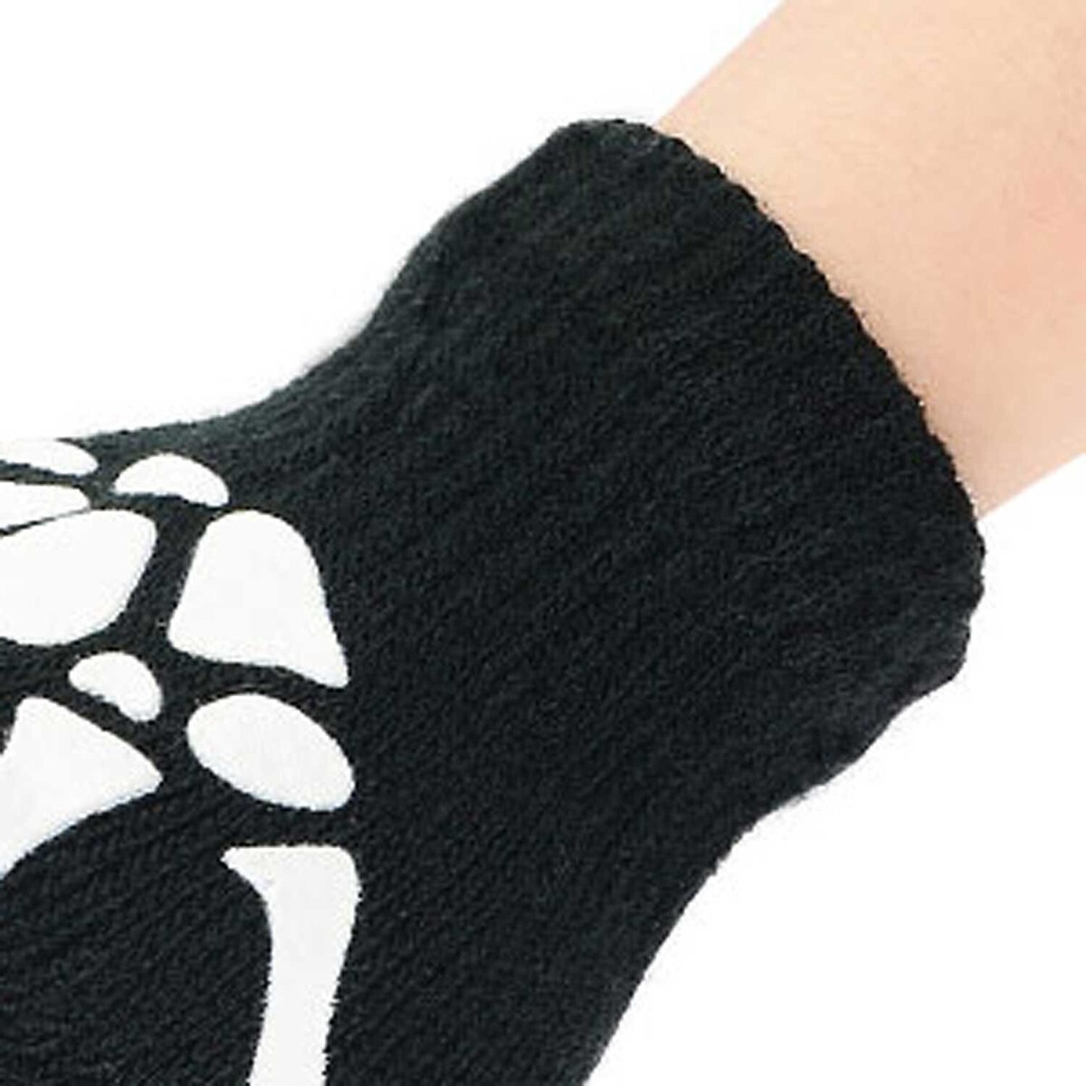 GLOW-in-the-DARK Gothic Magic Stretch Winter SKELETON HAND BONE GLOVES Black/White Stretch Knit-ADULT Unisex