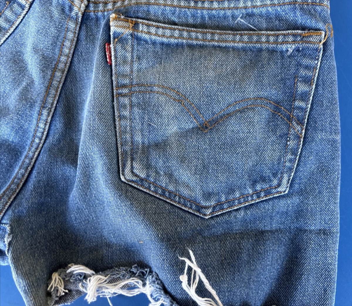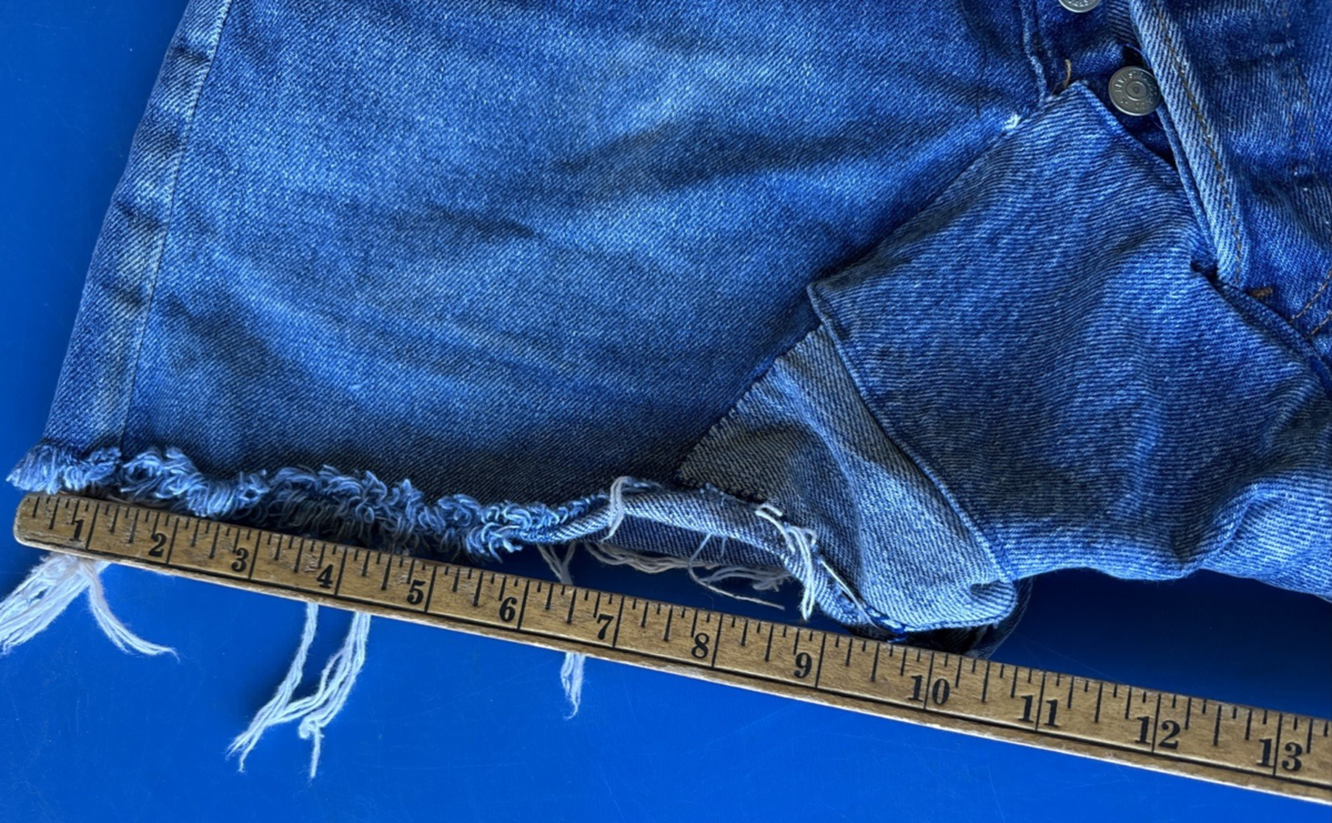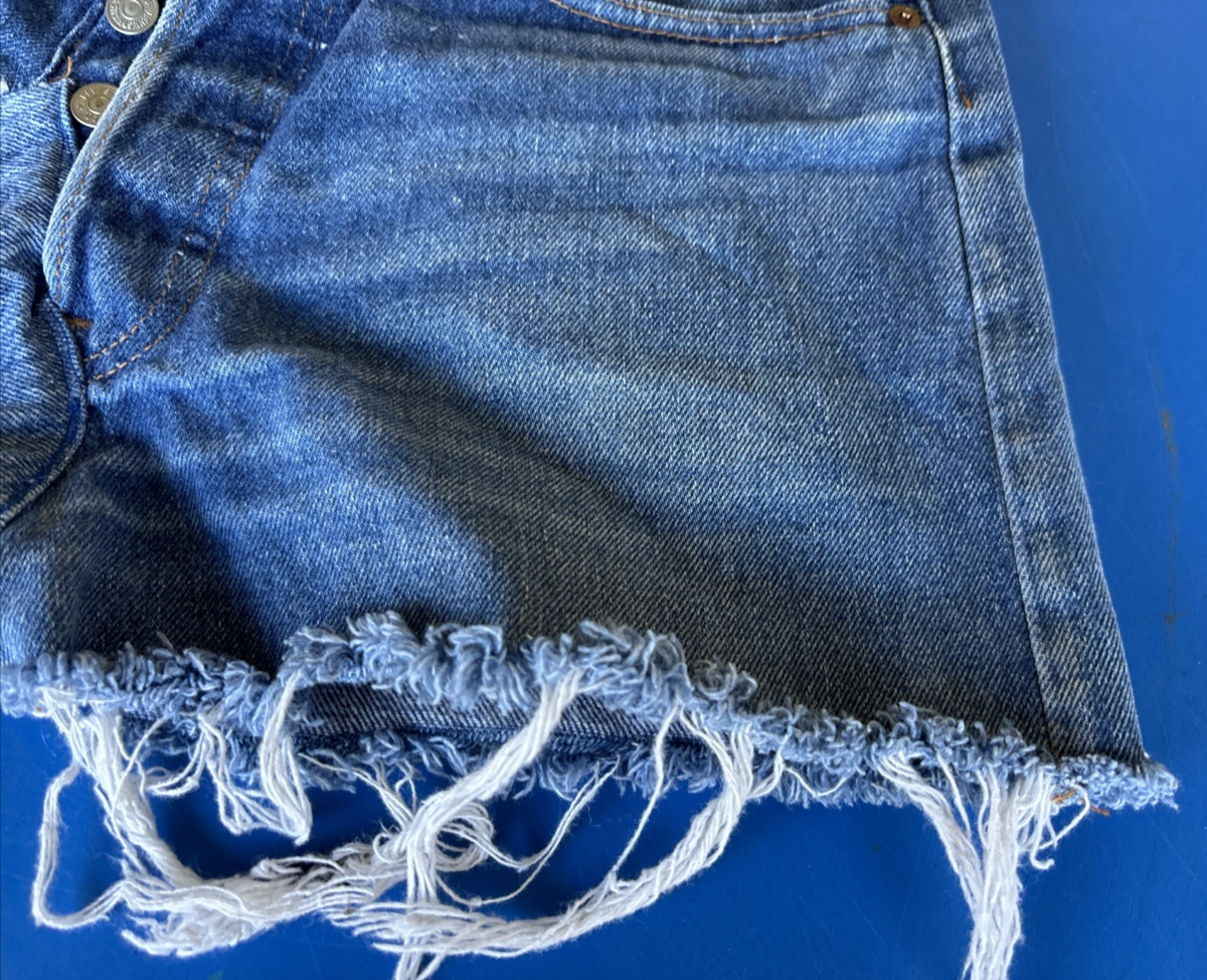 The product is a pair of vintage Levi's 501 denim shorts in blue, made of 100% cotton denim. With a waist size of 28 inches and a regular fit, these shorts feature a button closure and pockets. Perfect for casual occasions, these shorts have a cut-off style and are part of various themes such as festival, hippie, and grunge. Made in the United States by Levi's, these shorts are a stylish and classic addition to any wardrobe, suitable for various fashion styles and occasions.