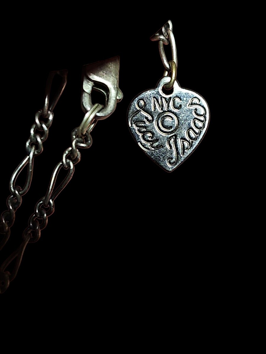This vintage Lucy Isaac NY charm necklace dates to the late 1970s and showcases the designer?s signature narrative, whimsical approach to wearable art. The necklace is constructed on a fine chain and adorned with an eclectic assortment of sculptural charms, each contributing to an expressive, story-driven composition that feels playful, theatrical, and unmistakably of its era.