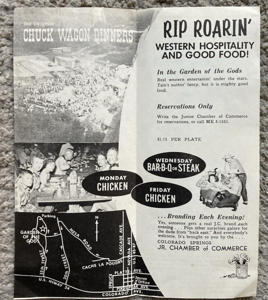 Vintage 1950s-60s JC CHUCK WAGON DINNERS Colorado Springs, Colorado Pamphlet
