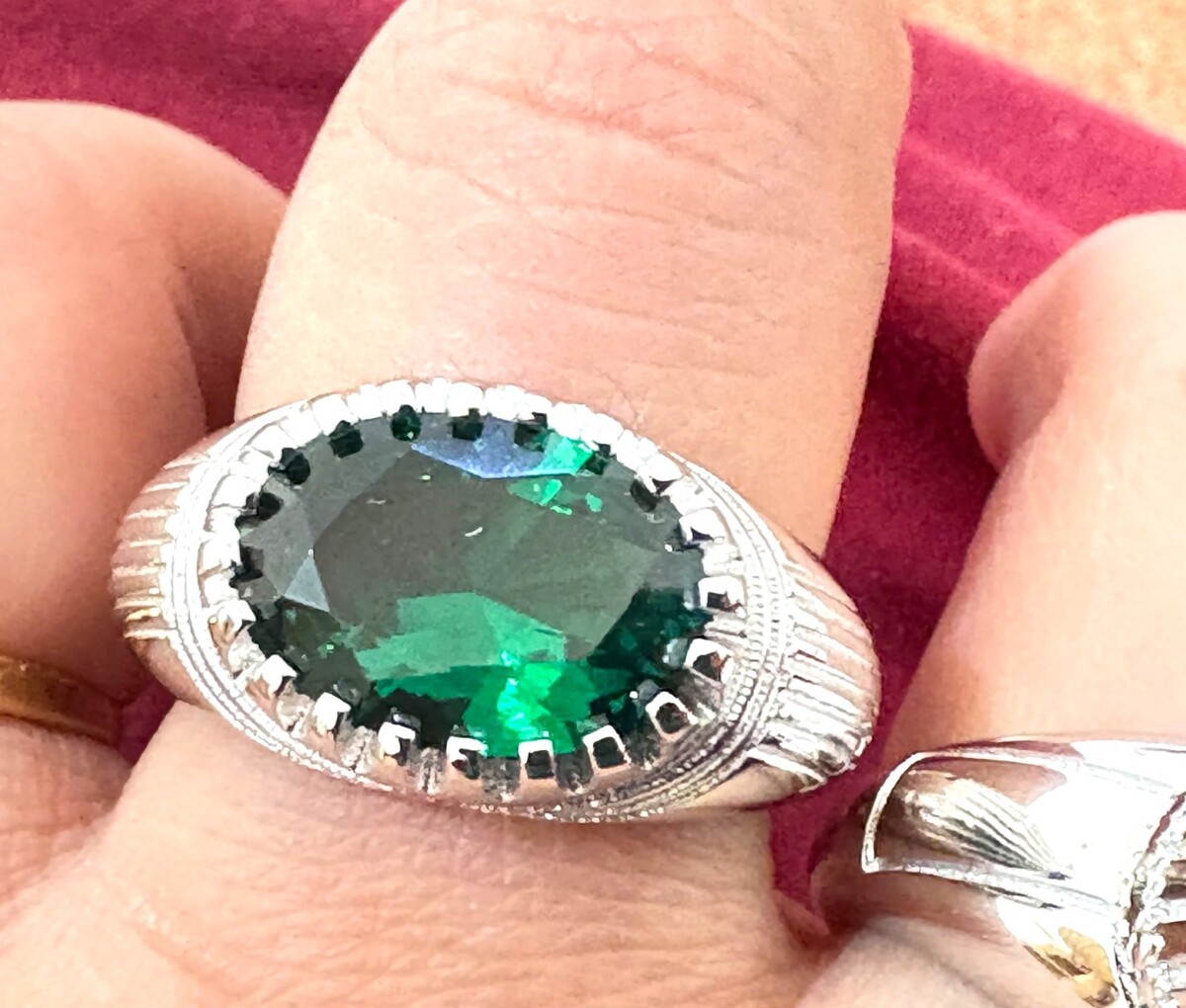 men silver ring sterling silver 925 ring with emerald gemstone ring for men