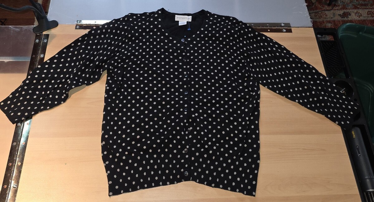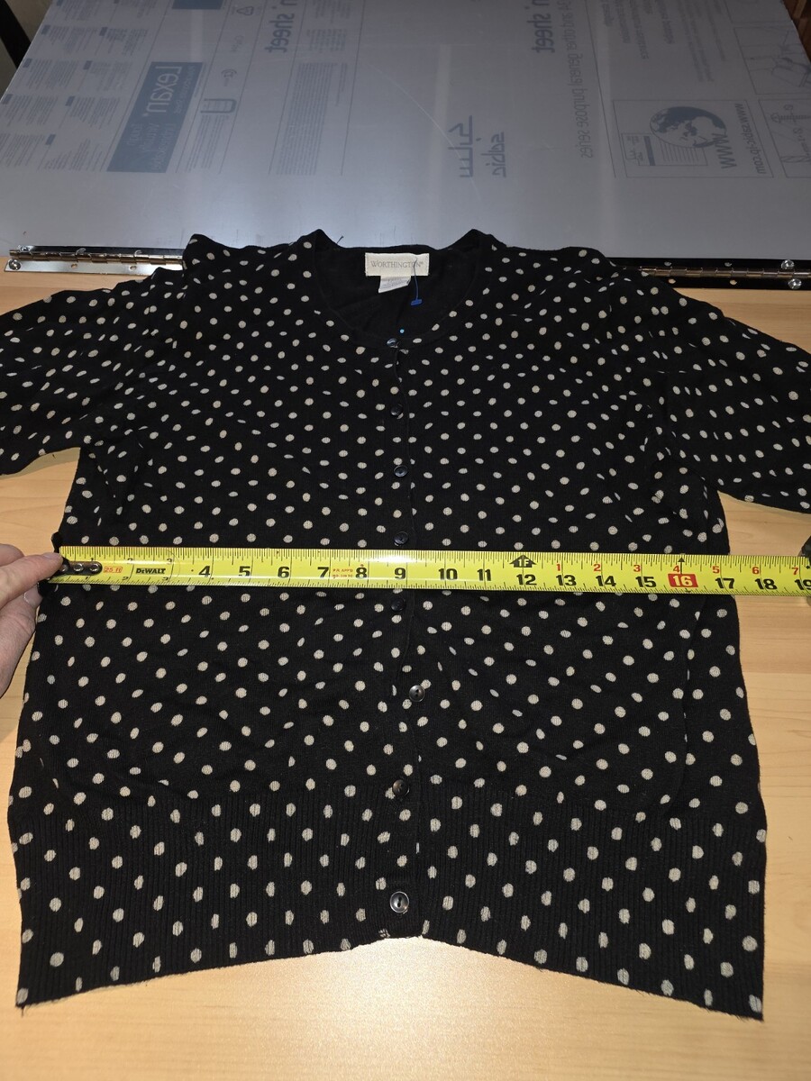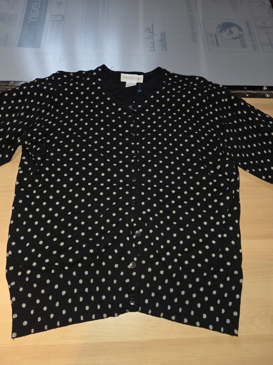 Worthington Black & Gold Polka Dot Button-Up Cardigan Sweater Size Large Petite