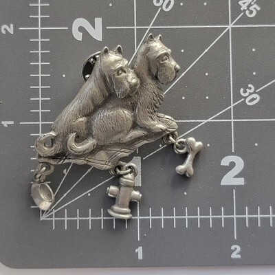 Signed LCD Double Terrier Dog Figural Dangle Charm Pewter Silver Tone Pin