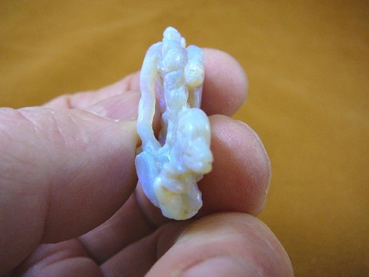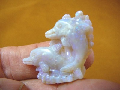 (O-225) little Dolphins in waves White green Coober Pedy Opal carved dolphin