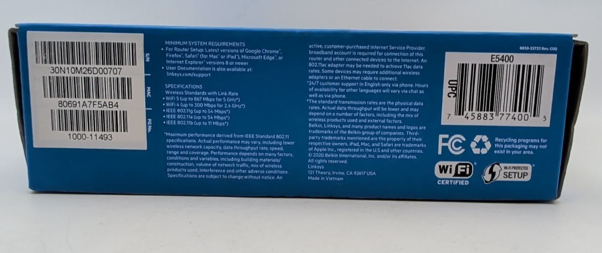Item includes: Please note: This item includes 1x Linksys E5400 Dual Band WiFi Router, 1x Ethernet Cable Only ? As Pictured. No other accessories are included.