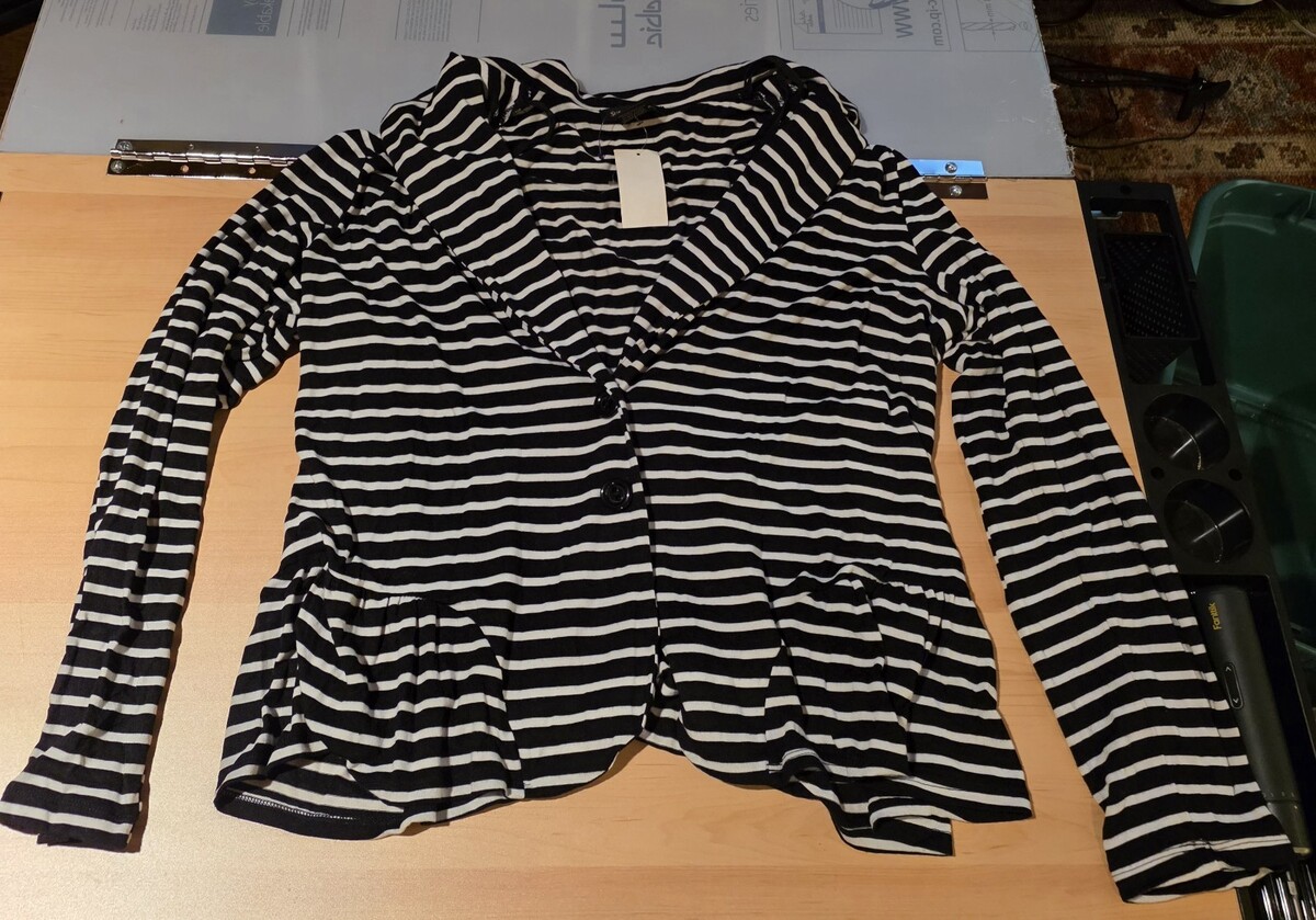 Susan Lawrence Black White Striped Ruffle Hem 2 Button Long Sleeve Top Blazer XL