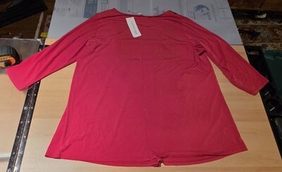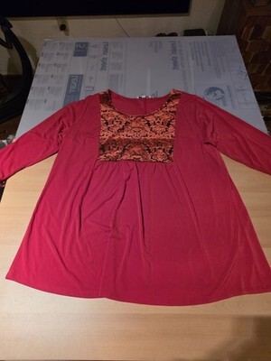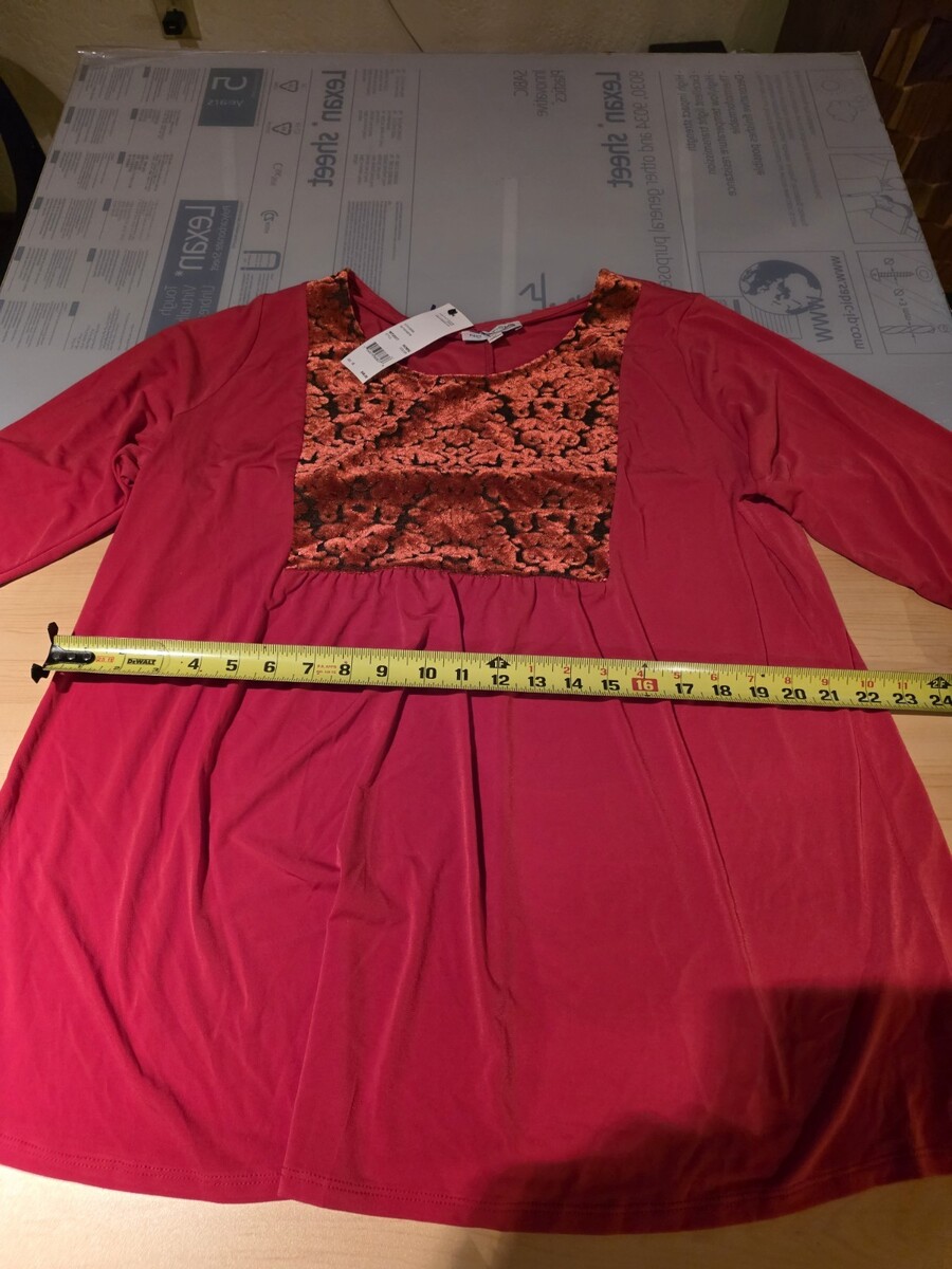 Notations Women's 3/4 Sleeve Top Blouse Round Neck Red 1X Velour Velvet Brocade