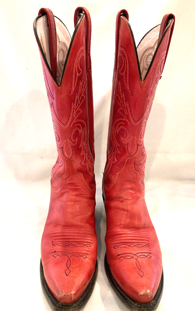 Vintage 1883 Lucchese Women's Fancy Pink Cowboy Boots 6B #N9305