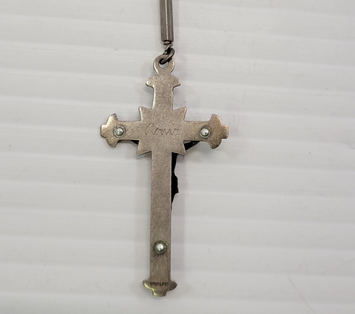 Crucifix measures about about 2" x 1" wide