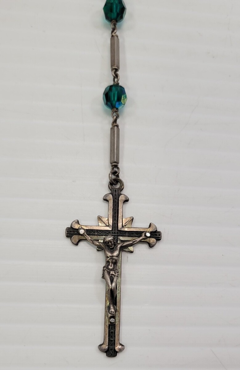 *C54) Sterling Silver Iridescent Faceted Miraculous Medal Rosary Beads Rome