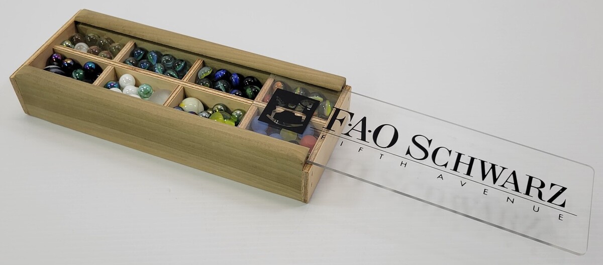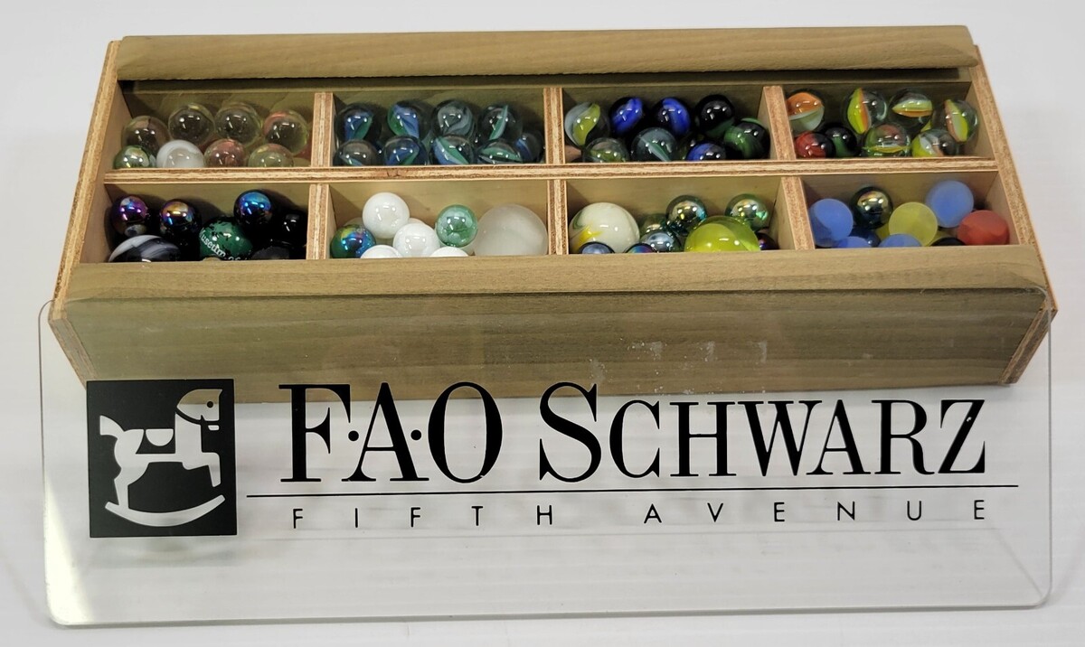 FAO Schwarz Fifth Avenue Mixed Lot of Various Marbles in Wooden Box
