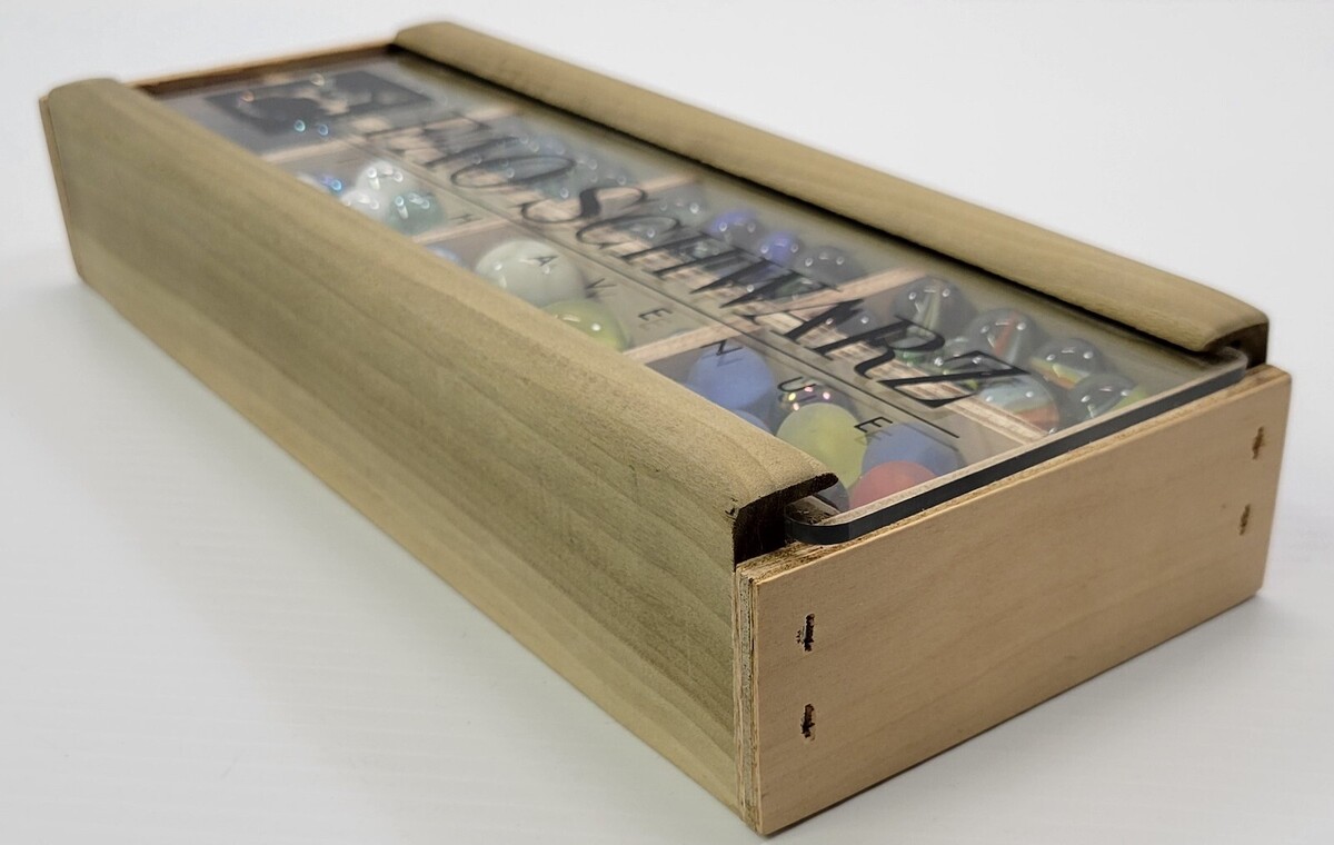 *B2) FAO Schwarz Fifth Avenue Mixed Lot of 120 Various Marbles in Wooden Box Toy