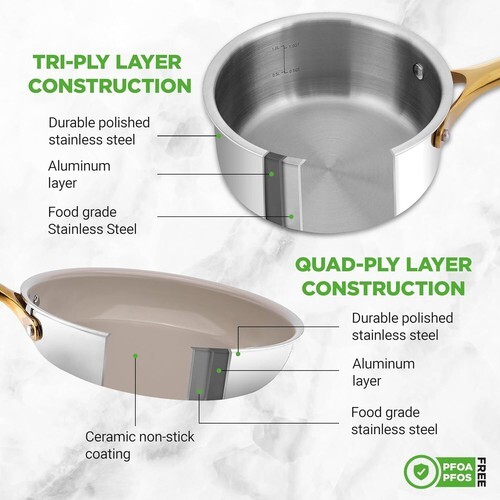 * COOKTOP COMPATIBILITY: Cook anywhere and however you would like as these pots and pans are safe for use in gas, electric, ceramic induction cooktops (1.5qt saucepot may not be suitable for induction). Also effectively distributes and retains heat