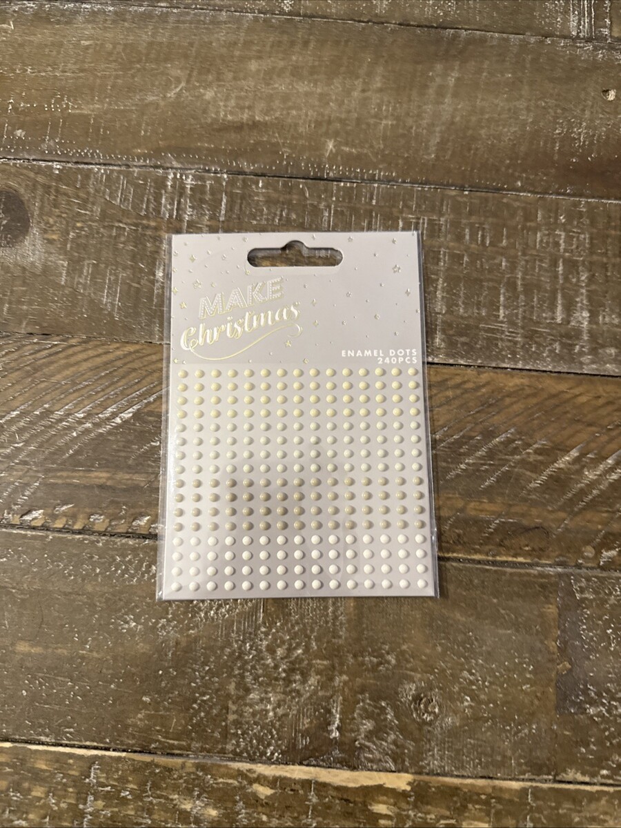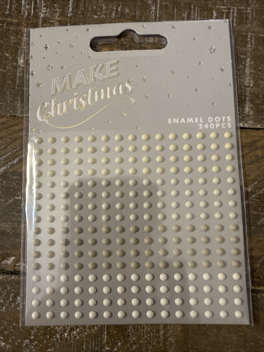 The product is a set of Christmas-themed enamel dots by the brand Make Christmas. These embellishments are perfect for adding a festive touch to scrapbook pages, cards, and other paper crafts. With a variety of designs and colors, these dots can be easily applied to enhance any holiday project. Add a bit of Christmas cheer to your creations with these charming enamel dots from Make Christmas.