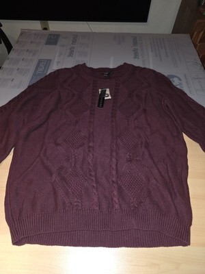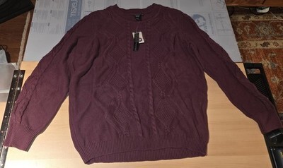 Preswick & Moore L Burgundy Cable Knit Diamond Pattern Crew Neck Sweater 1X
