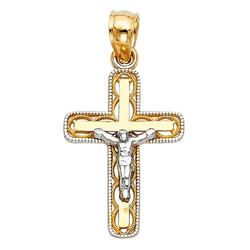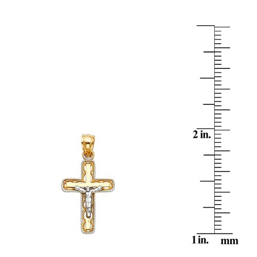 Genuine 14k Two-tone Gold 0.78" Crucifix Religious Pendant For Men or Women