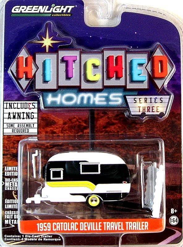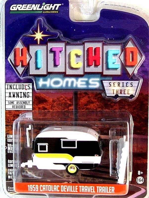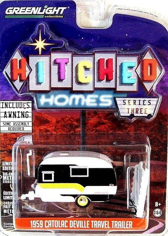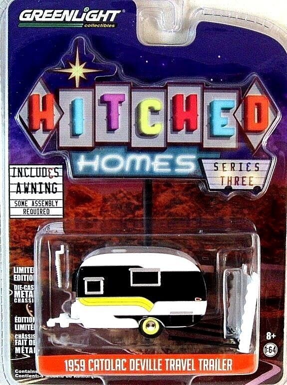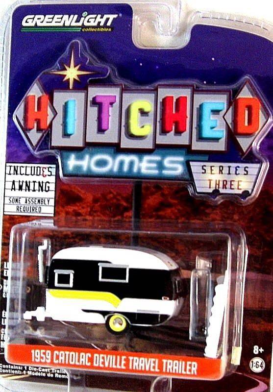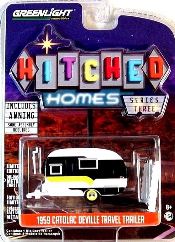 CATOLAC DEVILLE TRAVEL TRAILER 1959 BLACK/WHITE/YELLOE, GREENLIGHT 1:64 MODEL