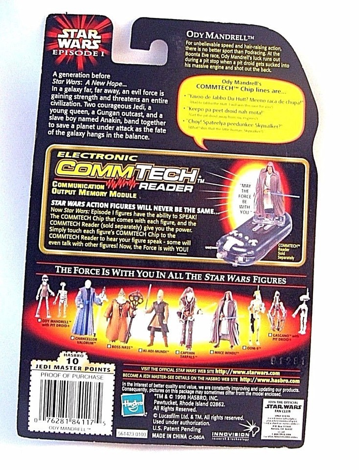STAR WARS CARDED ODY MANDRELL C-7/8 WITH OTOGA 222 PIT DROID+COMM TECH CHIP,NEW