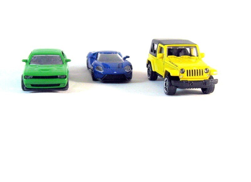 Modele : Jeep Wrangler, Ford GT, Dodge Challenger SRT Hellcat