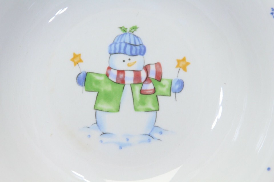 Enchanted Forest Xmas Snowman Snowflake Soup Bowls 8.375"