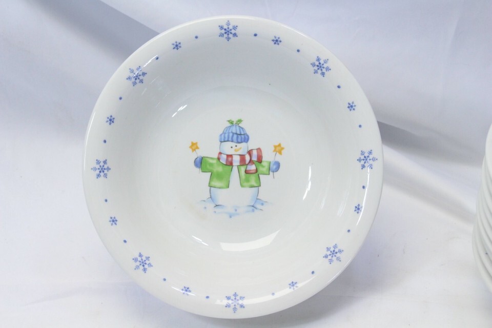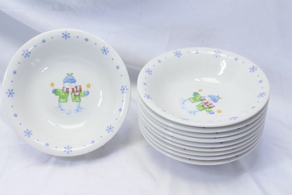Enchanted Forest Christmas Snowman Snowflake Soup Bowls 8-3/8" Lot of 10 Xmas