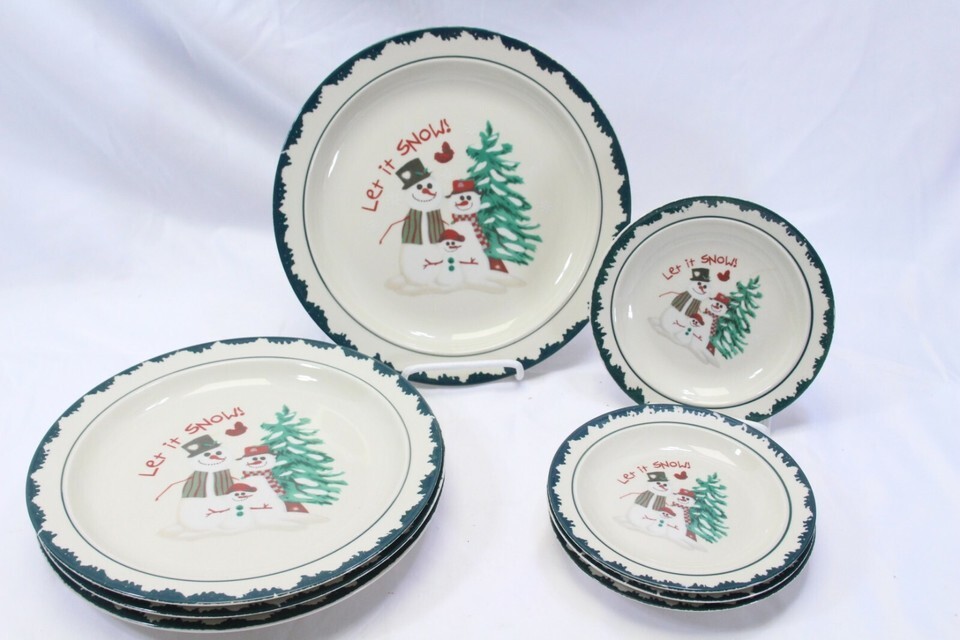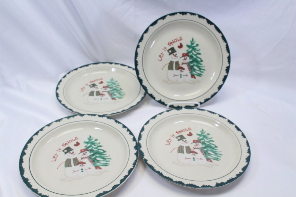 Atico Let it Snow Christmas 4 Dinner + 4 Dessert Plates Xmas