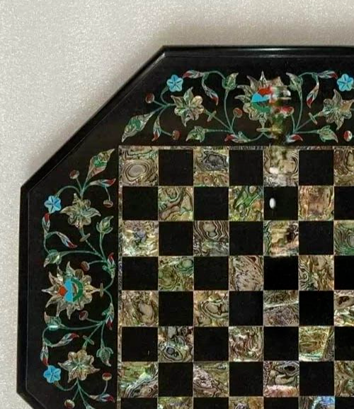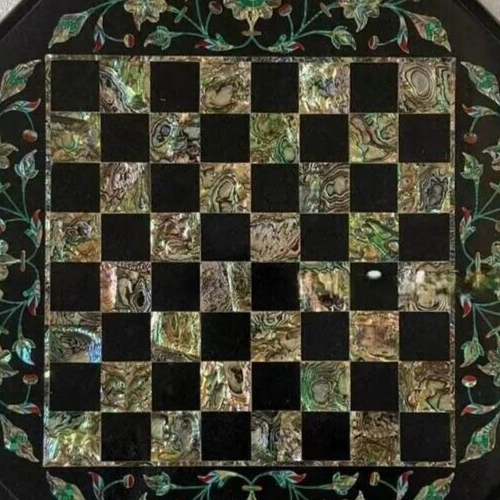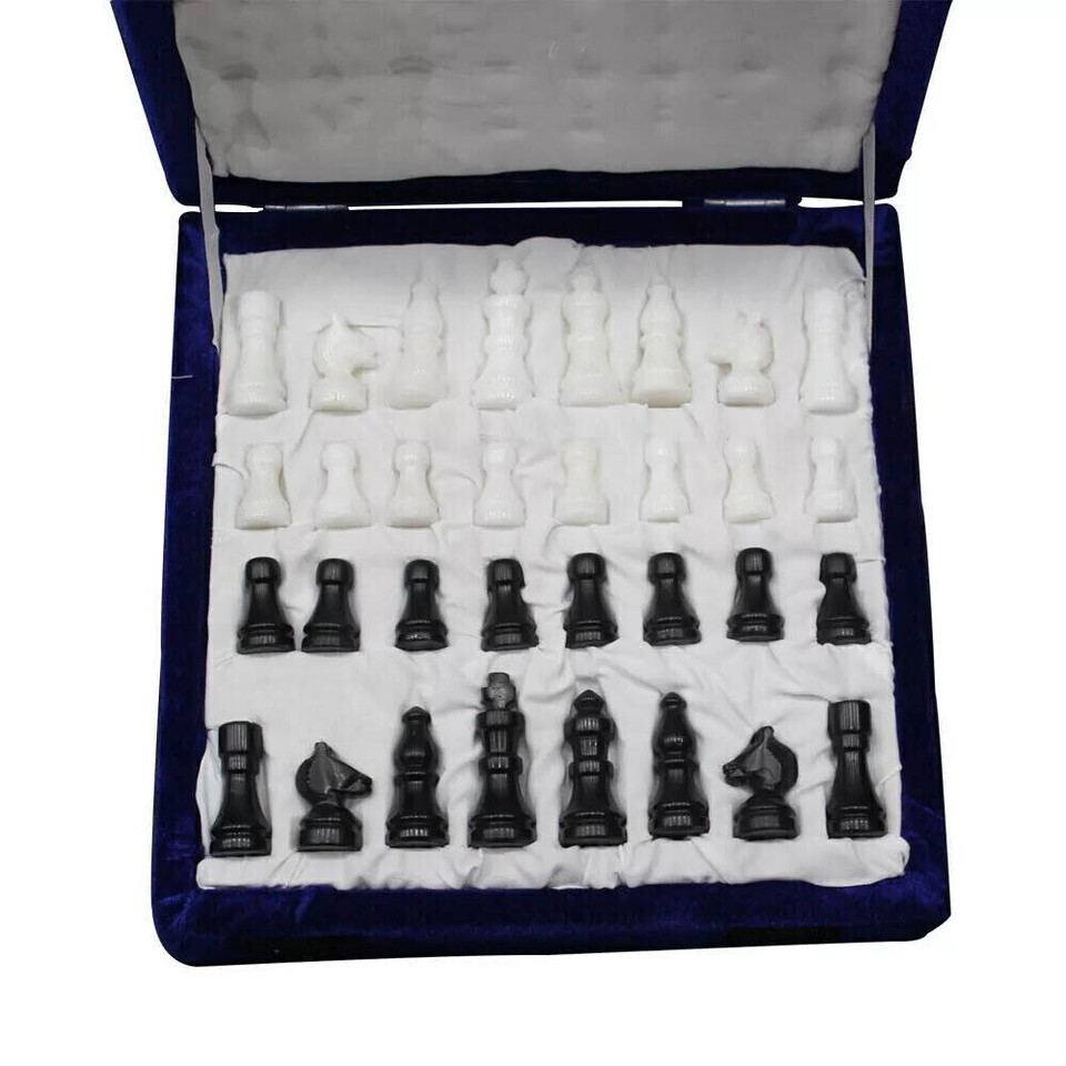 12" Buy Black Marble Chess Set Vanity Top with Pcs Marquetry Arts Adults Games
