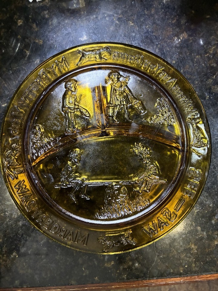 Vintage Tiara Glass Amber Nursery Rhyme Divided Child's Plate
