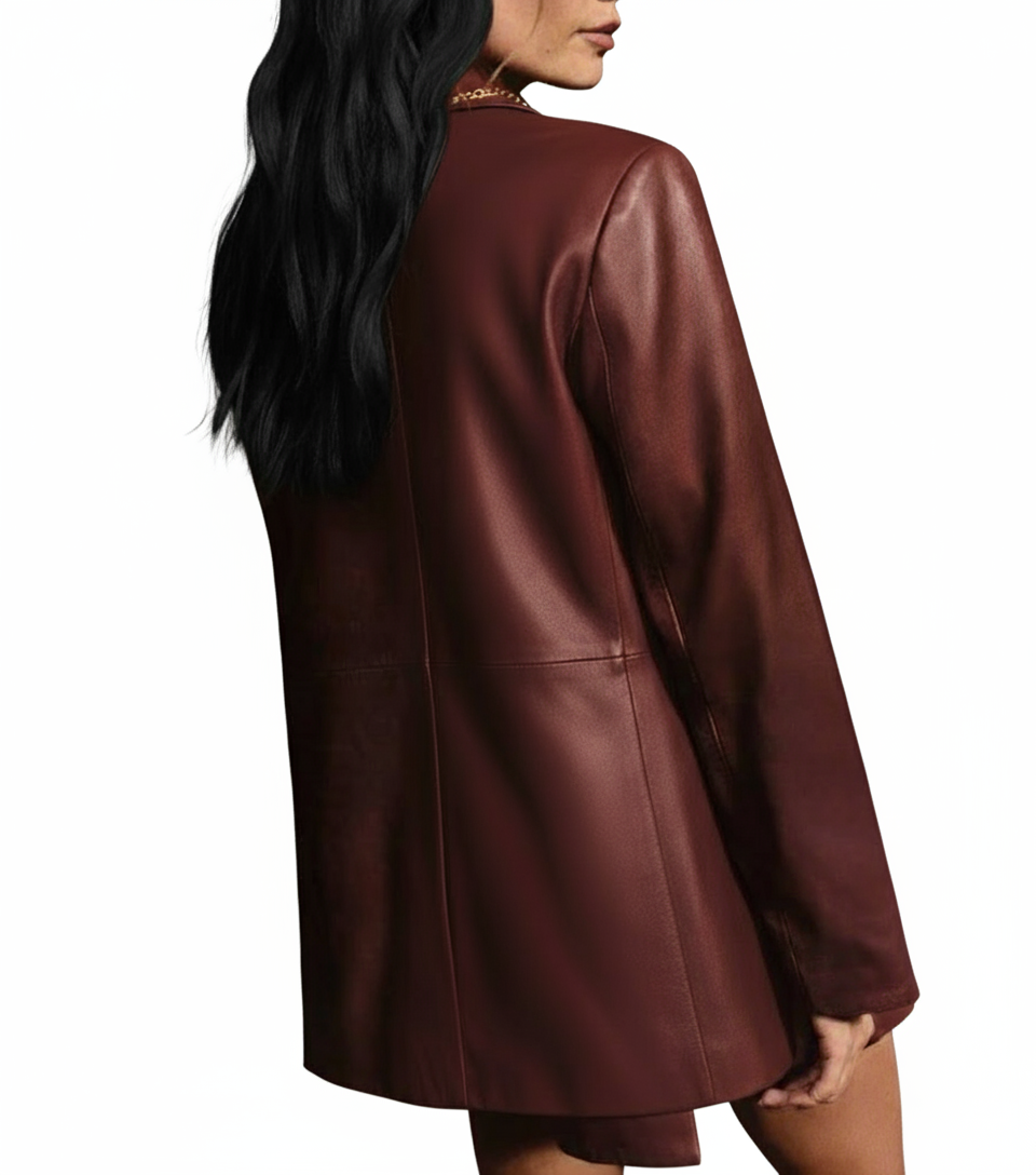 Women's Burgundy Blazer Formal Leather Double Breasted Lambskin Genuine Handmade
