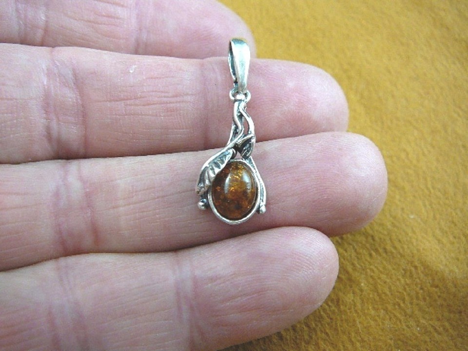 (P18-106) golden orange AMBER oval stone .925 Sterling SILVER ornate PENDANT