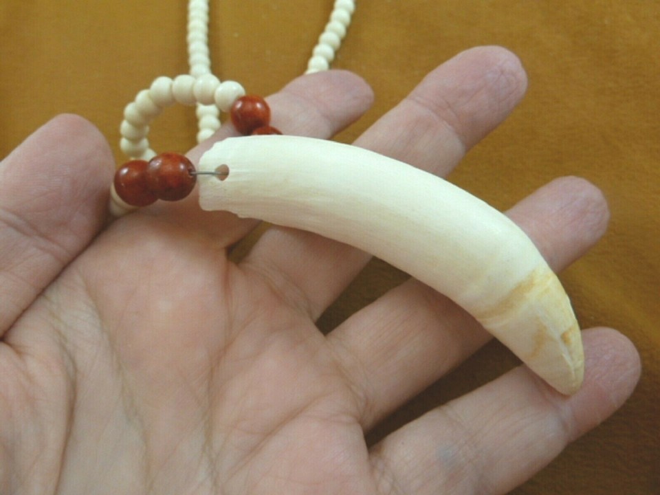 G157-65) 3-1/2" one HUGE GATOR T**TH water buffalo Necklace Alligator