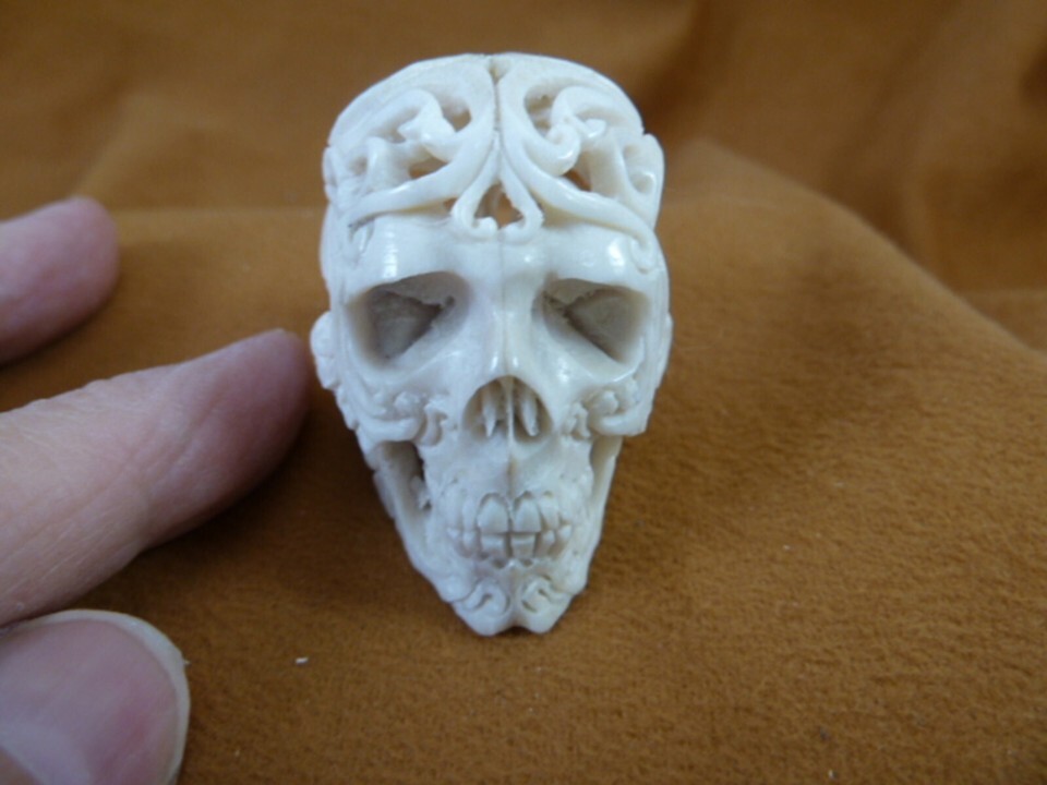 (SKULL-W55) Medium white full skeleton Skull figurine Bali antler crafted sugar