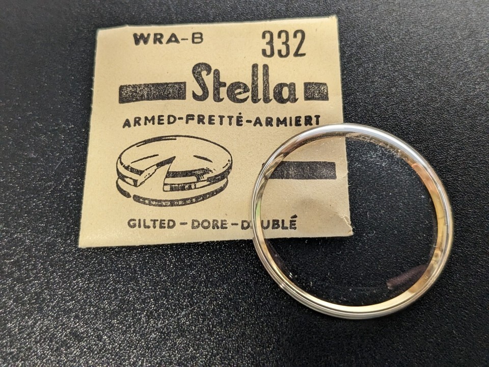 NOS Stella Round Armored Watch Crystal WRA-B / Extra Wide Gold Tone Tension Ring