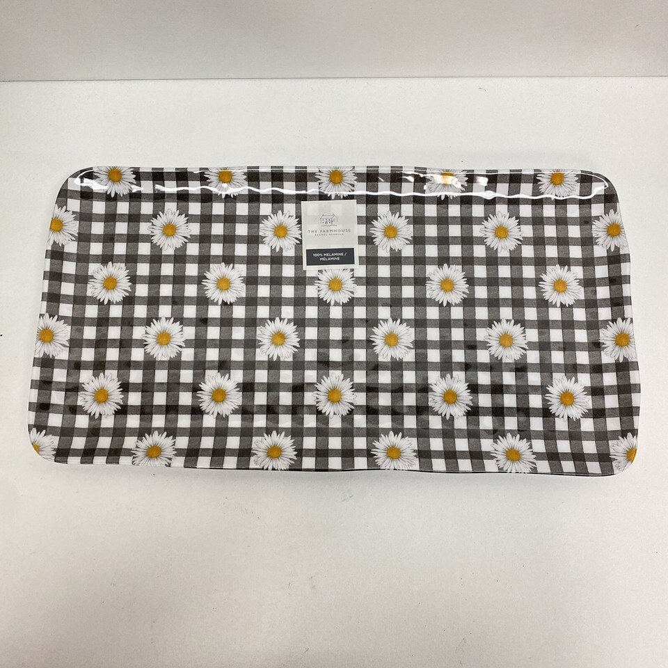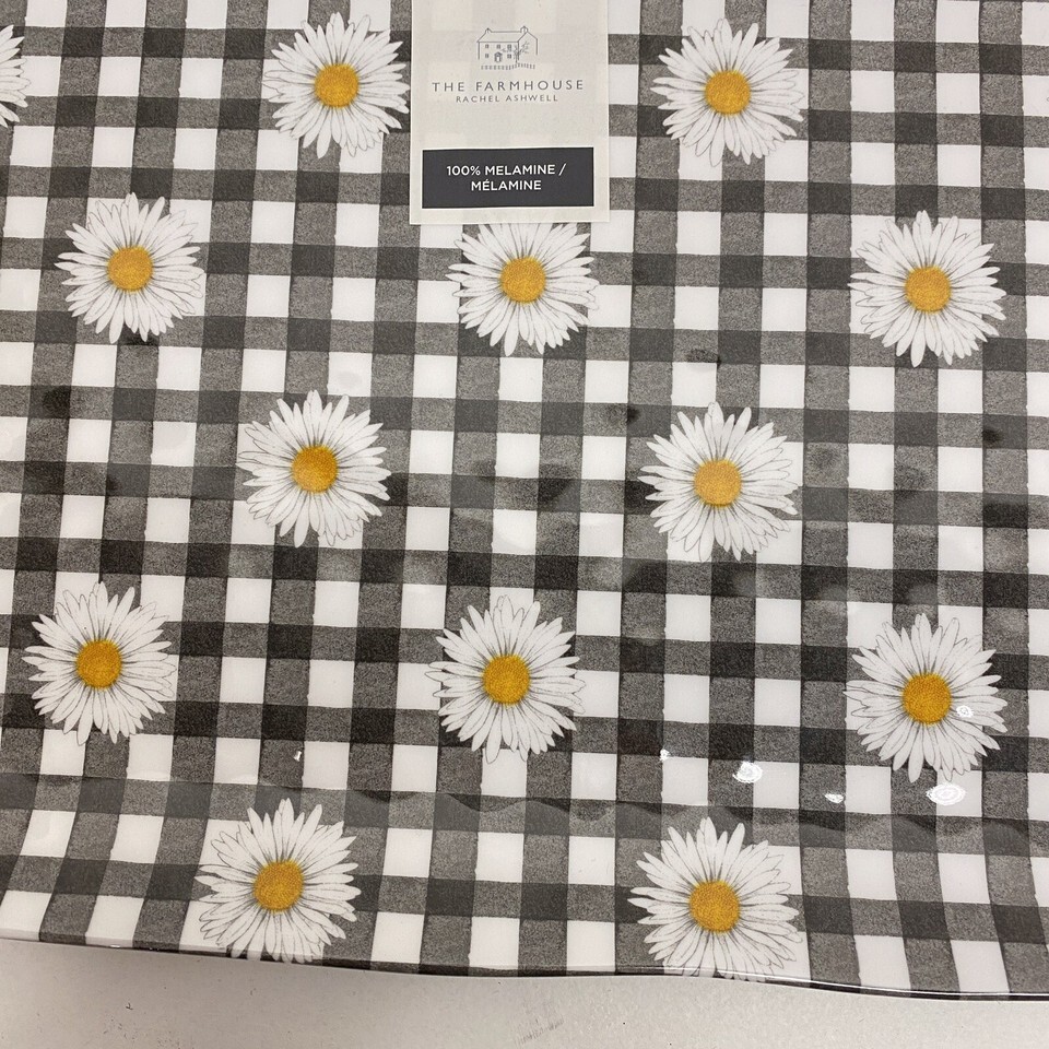 The Farmhouse Rachel Ashwell Black Gingham Daisy Melamine Tray Platter
