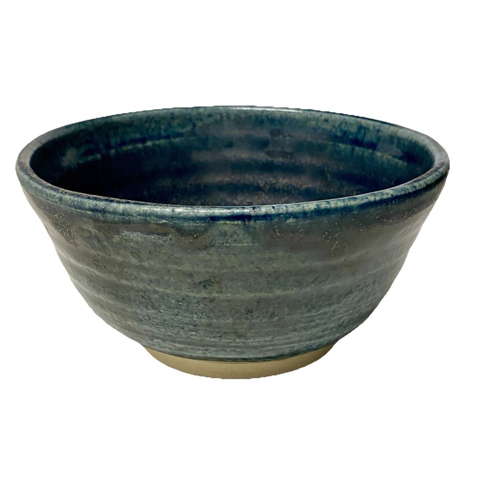 Stoneware Pottery Bowl Wheel Thrown Blue Glaze Handmade Signed OOAK 3.5 x 6
