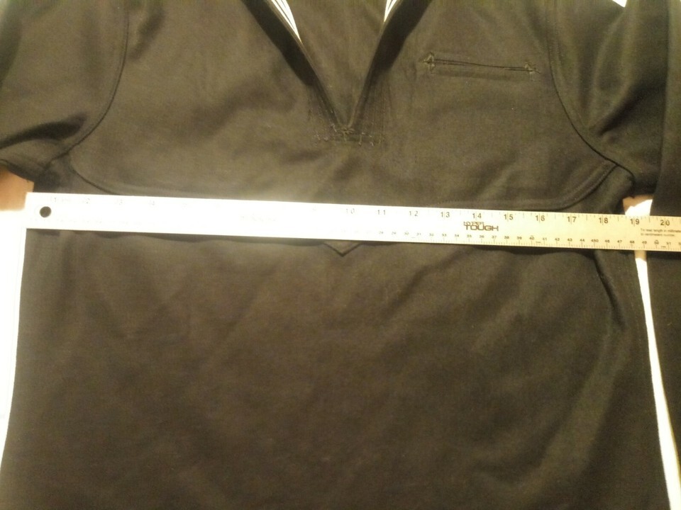 Our MILITARY TOPS are 100 percent Authentic US NAVY CRACKER JACK BLOUSE , we take pride in selling some of the most Authentic Military Gear known in the Industry, Each Item has a size Label in each one of them , However we go one extra step and provide exact measurements in our pictures, we provide measurements for the Chest, arm length, and length. We wash each Item Twice, we will list every defect in our Auction. Each Top has been Inspected and although some have minor issues we pride our sales on showing every Inch in our pictures. Thank you for looking at our Store, we have sold over 10,000 Assorted Military Jackets, Tops, and Shirts, and have feedback from our customers to back up our quality, please take a quick minute to check out our feedback for the Military Gear we have sold.