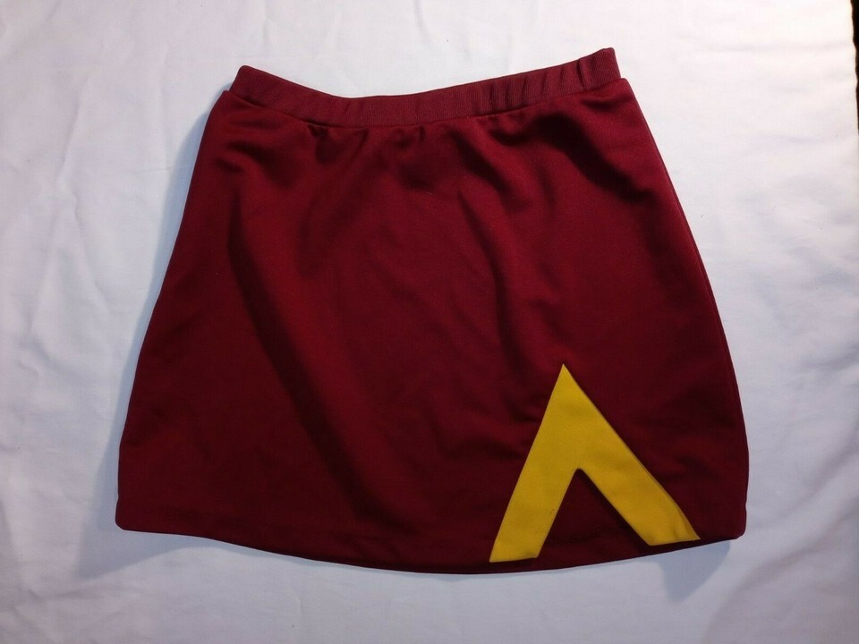 HALLOWEEN COSPLAY CHEER CHEERLEADING SKIRT BURGUNDY & YELLOW SIZE G-15