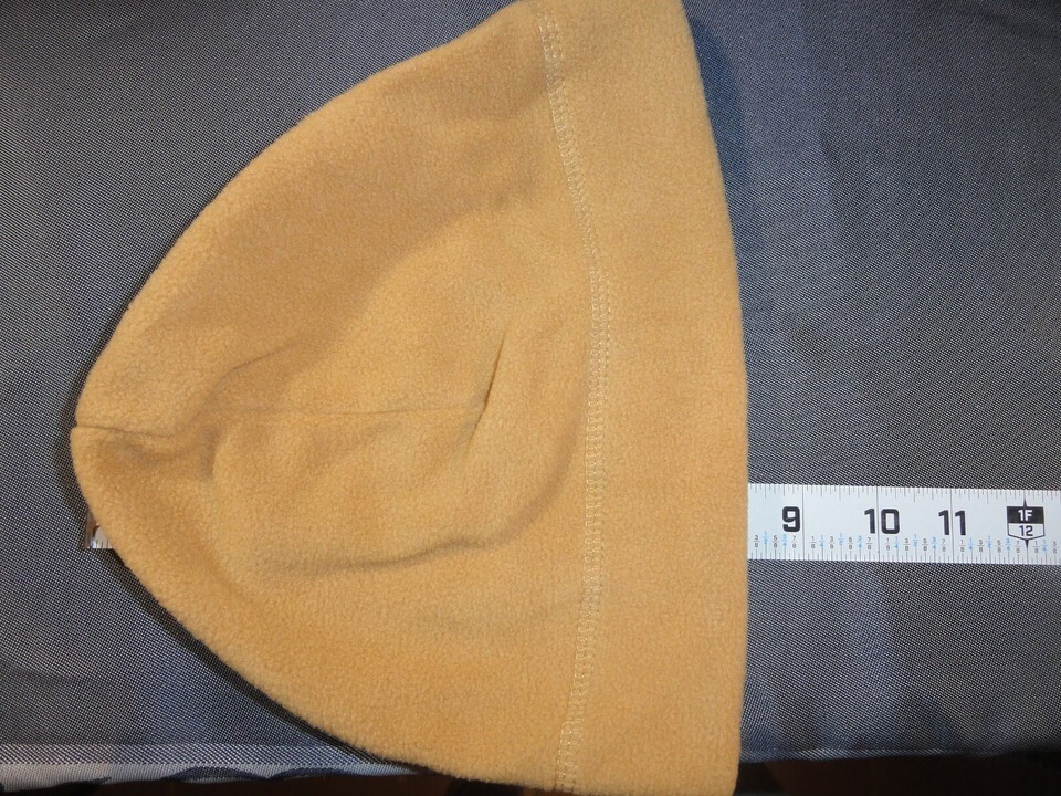 The microfleece cap is a single ply construction in a bell shape, pull-on style with a crown shaped of four equal sections joined together by darts of equal length and with a 4 + 1/8 inch wide hem that can be cuffed or worn down. This design provides a cap that is light in weight, low in bulk, has environmental protection, and compatible with the helmet and
