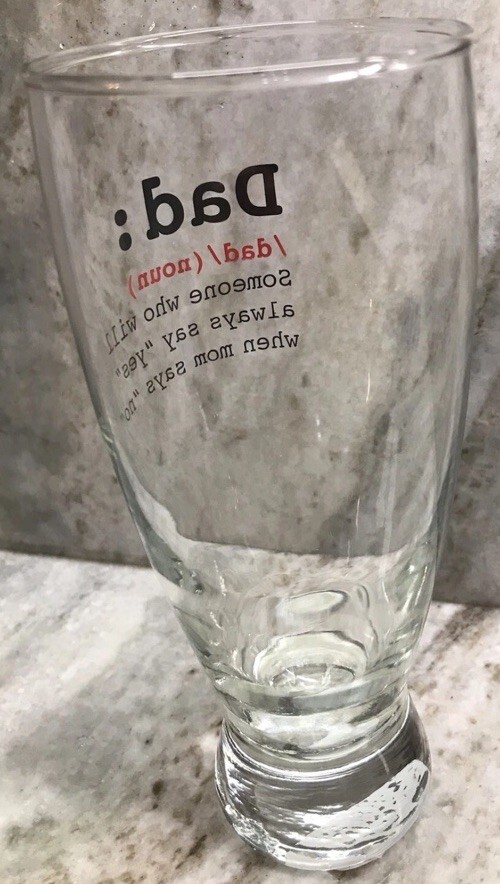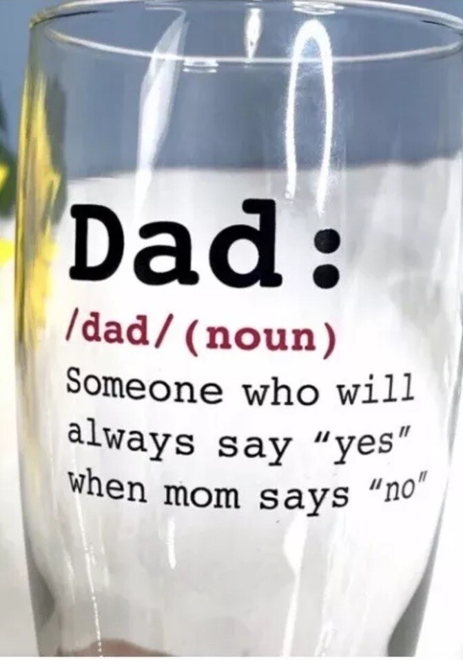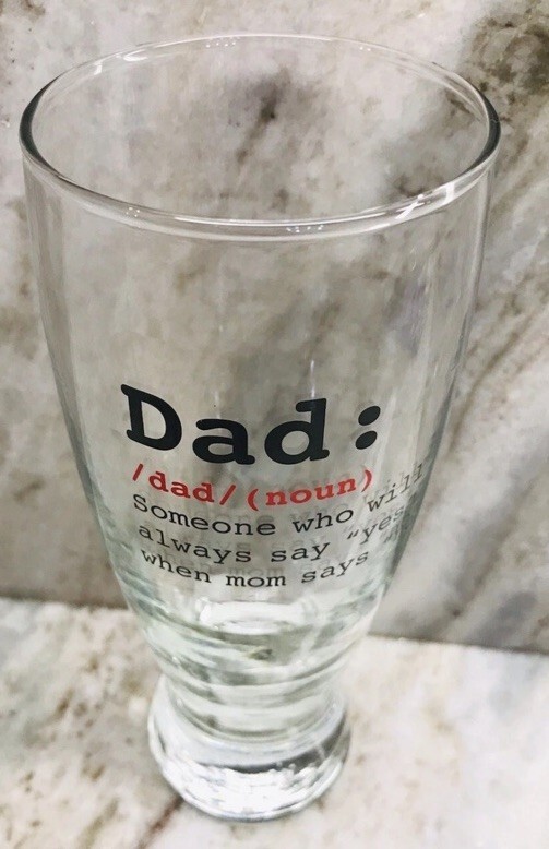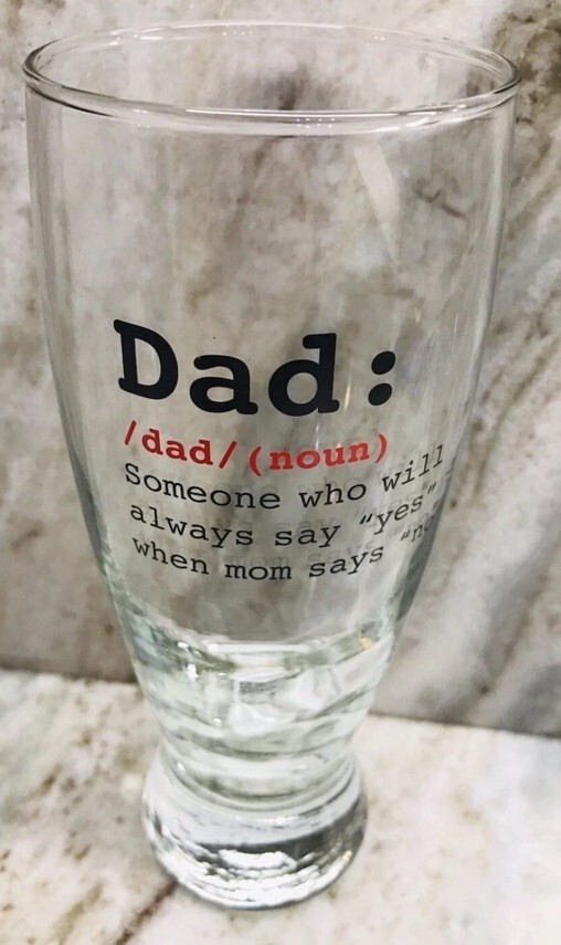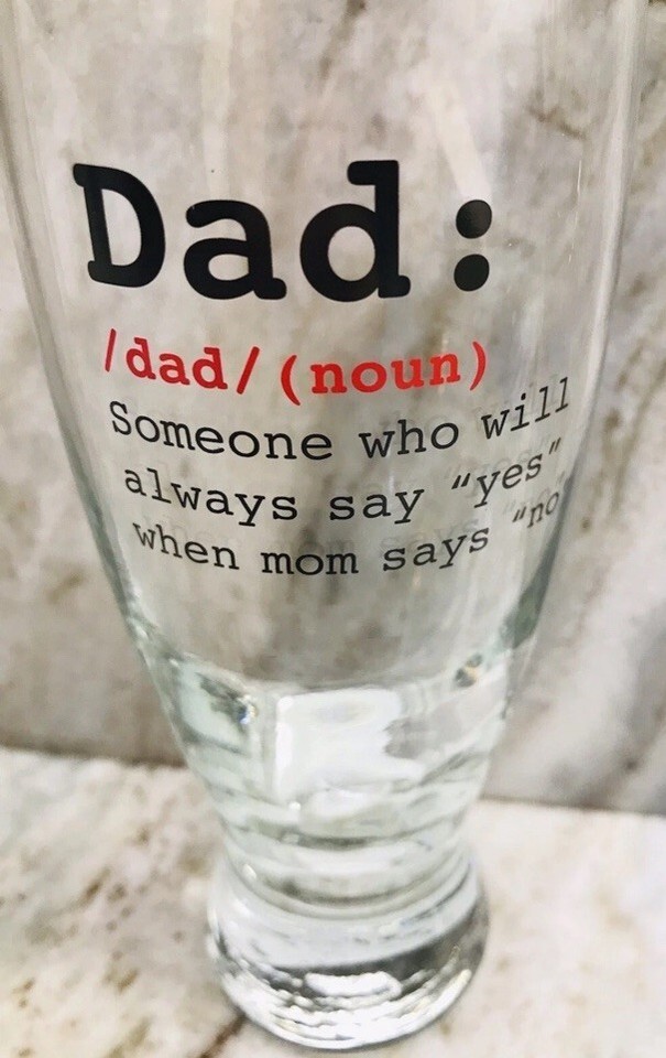 "DAD:dad/(noun) Someone Who Will Always Say “YES” When Mom Says “NO” Beer Glass
