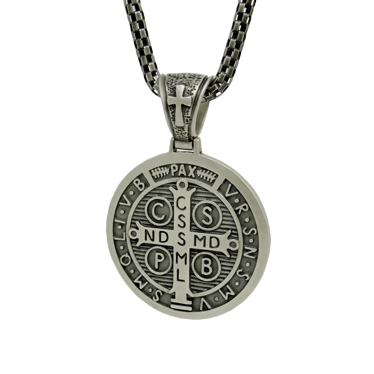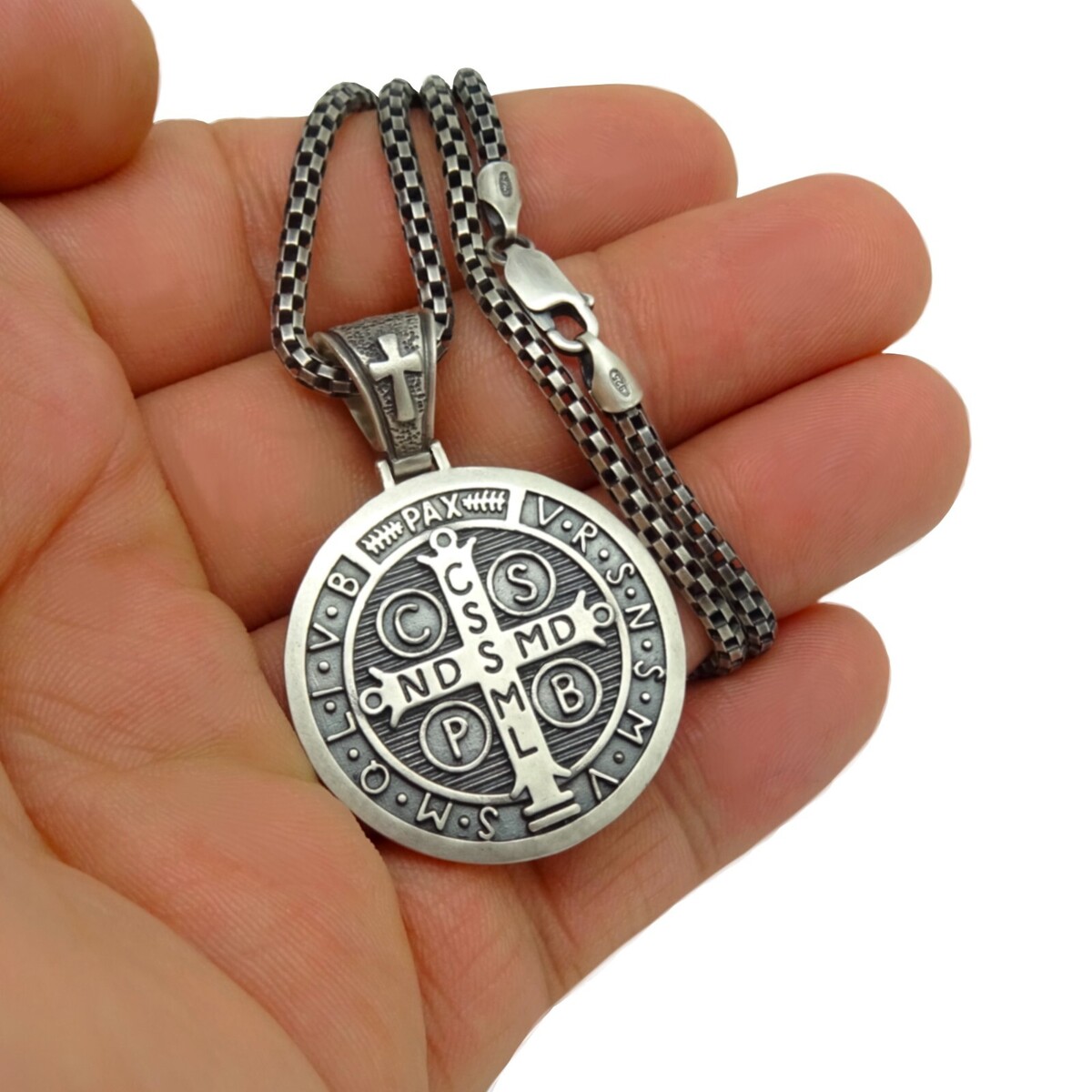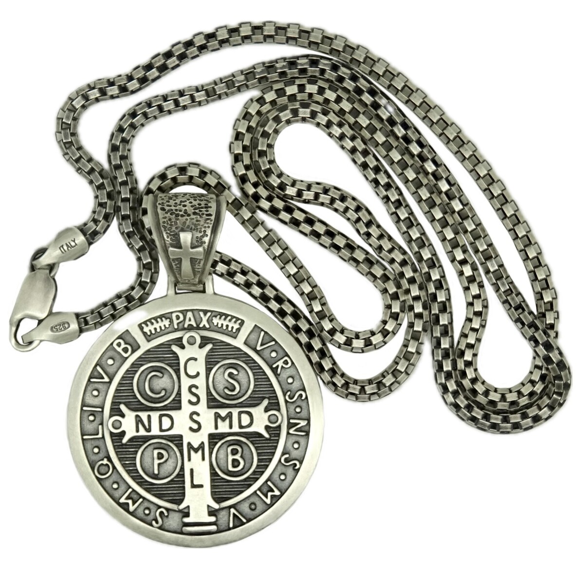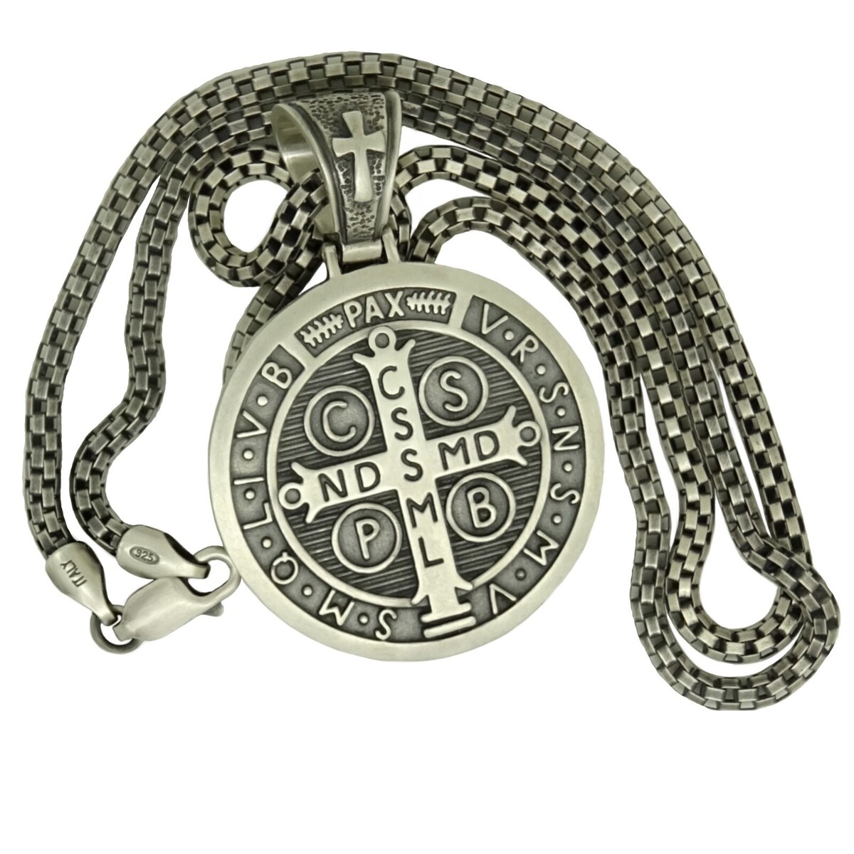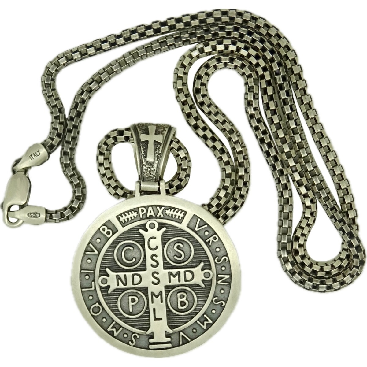 Saint Benedict Men's Woman’s Silver 925 Pendant Medal Cross Exorcism with Chain