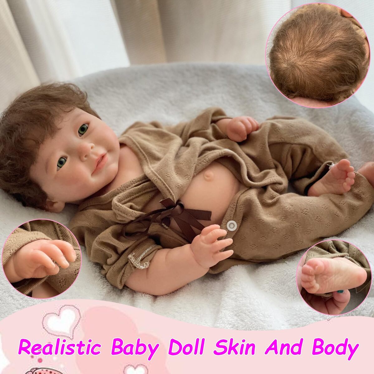 Reborn Baby Dolls Silicone Full Body 18" Waterproof Realistic Newborn With Hair