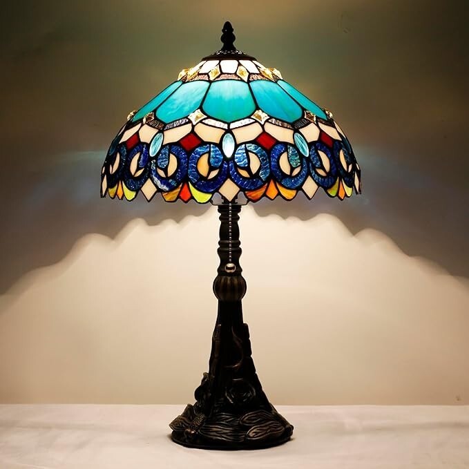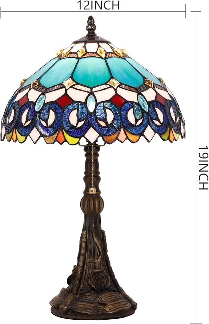 Tiffany Lamp Stained Glass Table Lamp 12X12X19 Inch Resin Base for Desk Bedroom