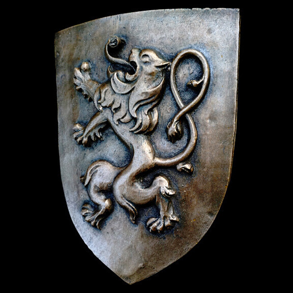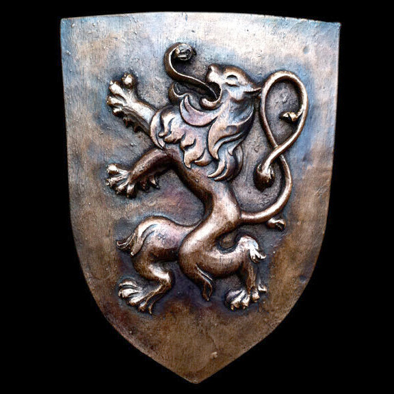 Rampant Lion English Scottish symbol Shield art sculpture plaque Dark Bronze