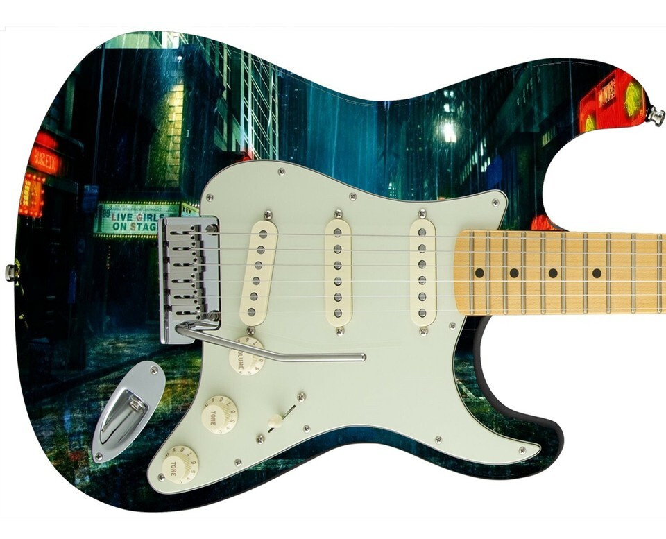 Guitar Skin Big City Nights Girls Taxi Cinema Scenic vinyl sticker decal GS 036
