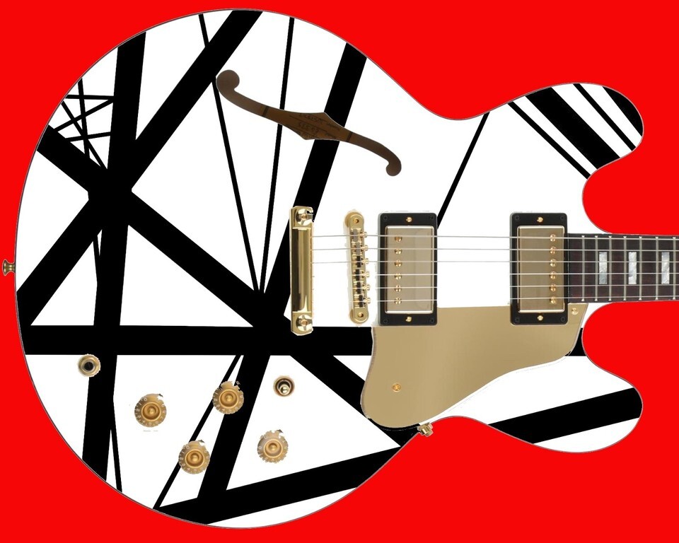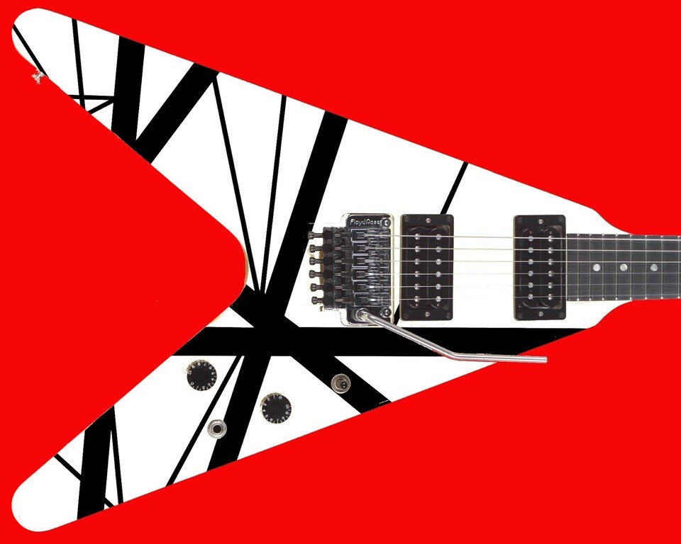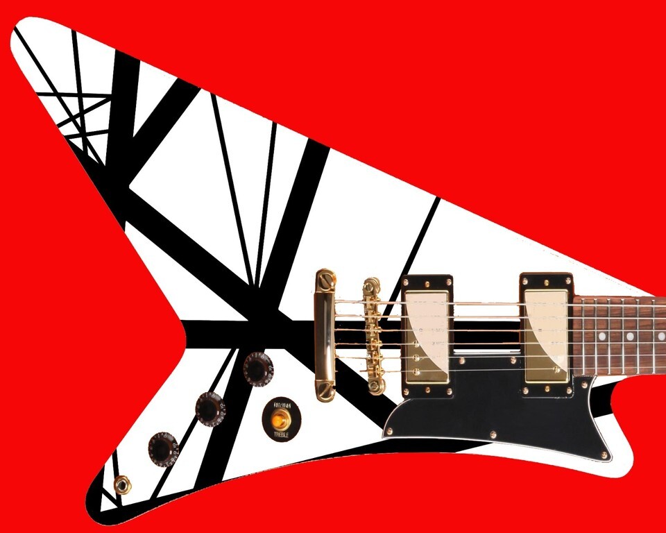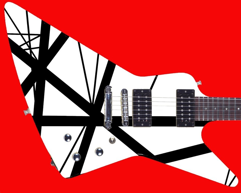 Hard Rock Metal Guitar God Red Black White Stripes V11